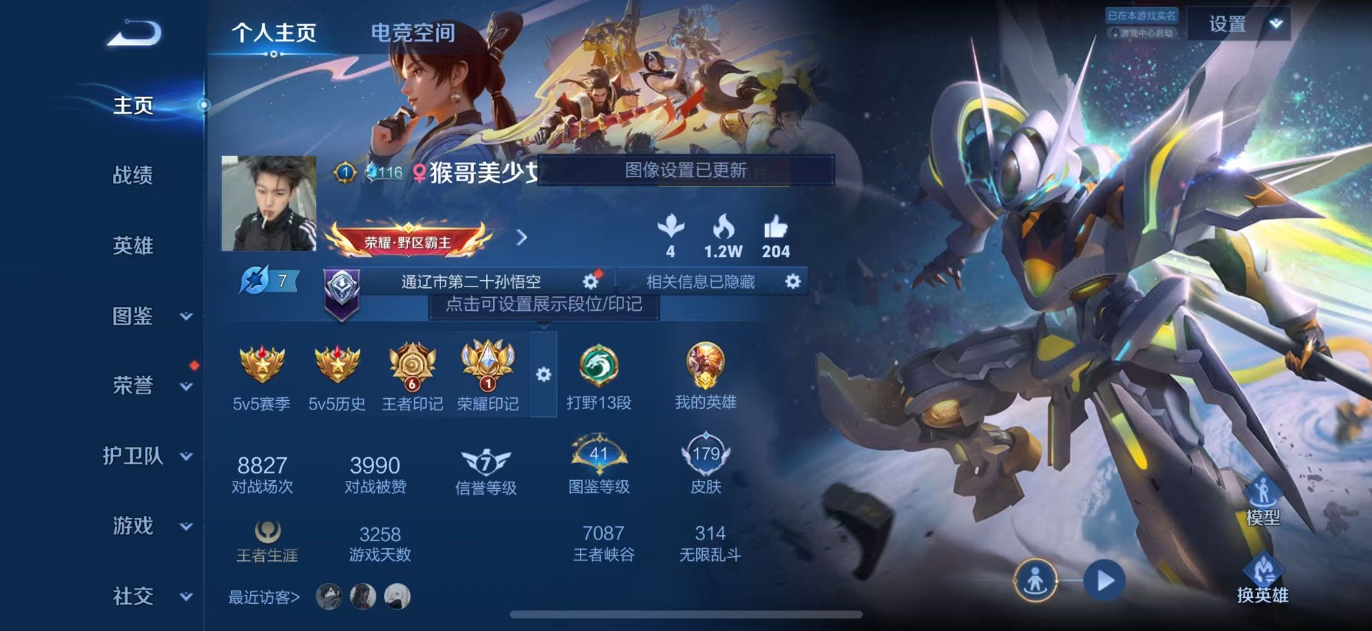 - PX_2096366-安卓Q 【可二次】 英雄数量:123 皮肤数量:287 贵族等级:贵族V8 【星传说 未来机甲】荣耀典藏1 珍品传说2 传说品质15 史诗品质64银白咏叹调 怪盗基德 器灵·落星盏 愿照·千秋盛 猫影幻舞 玄雷天君 山海炽霜斩 祥瑞亨通 愿照·九州拓 久胜战神 末日机甲女 冠军飞将 无限倾心女 启明星使 地狱之眼 黄金狮子座 鸣野蒿 逐花归海 至尊宝 天才门将 王者之锤 心灵