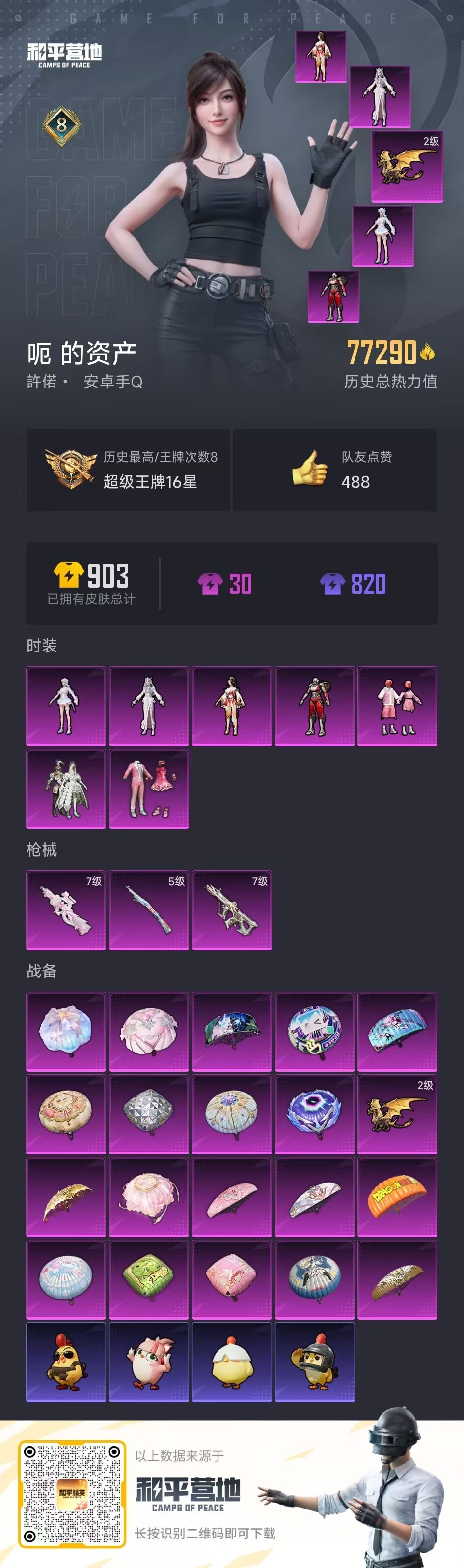 - PX_2077601- 苹果手Q-20王牌印记-16粉装-5特效枪-1载具-109128热力值-255套装-312枪皮-2卓越印记-1传奇印记 【16粉装】,甜心巧克力,宝贝奶油派,天使彩虹糖,新星烈龙,蝶舞迷情,极致幻想,千金淑猫,深渊皇后,古堡领主,华贵君王,闲梦青缨,闪耀律动,紫电风暴,俏皮狐尾,快乐主宰,数码大师 【5特效枪】AKM-梦之光华-7级 SCAR-L-锦绣绵绵-5级 M416-