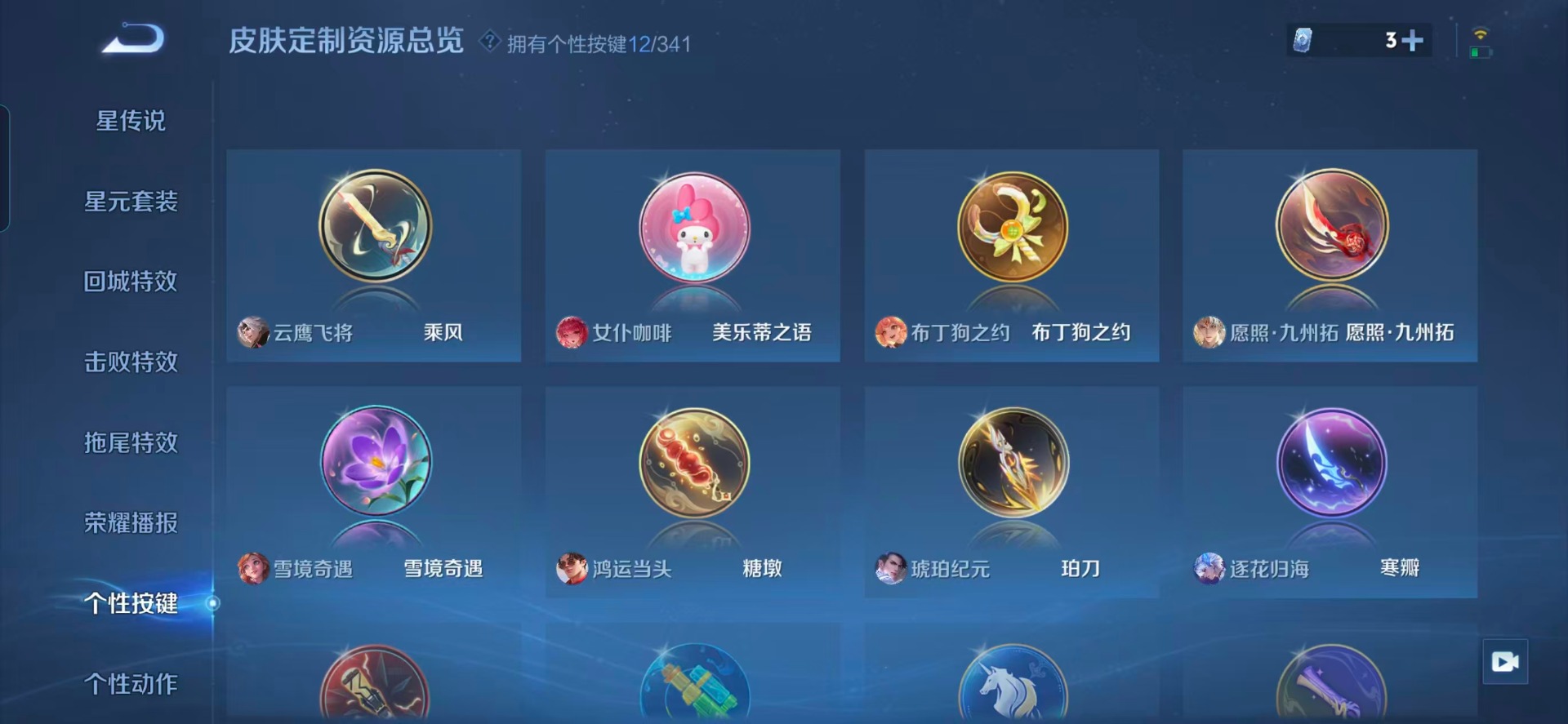 大乔猫狗日记,夏侯惇乘风破浪,曹操幽灵船长,小乔缤纷独角兽,孙尚香时之恋人,露娜紫霞仙子,司马懿暗渊魔法,刘禅绅士熊喵,宫本武藏鬼剑武藏,夏洛特永昼,李白千年之狐,安琪拉心灵骇客,雅典娜冰冠公主,李元芳逐浪之夏,蔡文姬舞动绿茵