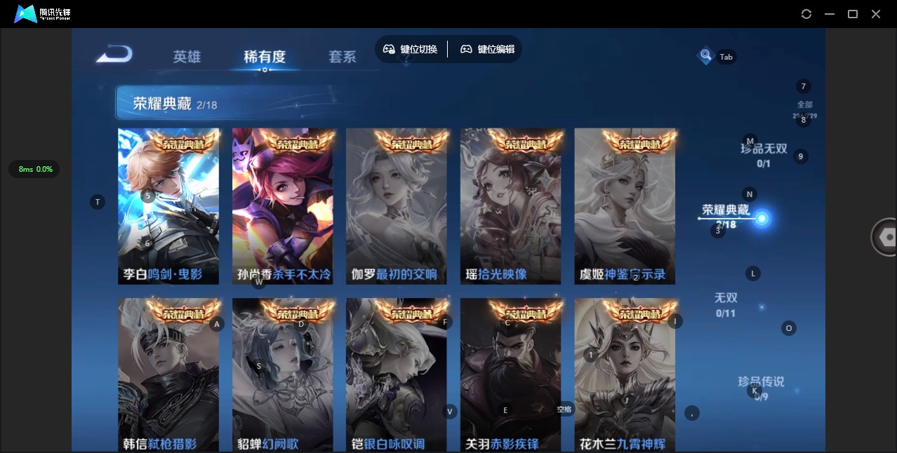 - [11878718]V6 1典藏 2传说 123英雄 205皮肤 可修改实名 荣耀水晶:全息碎影(猴子典藏) 传说皮:地狱火 珍宝阁皮:蔷薇恋人,女武神 限定皮:愿照·九州拓(澜年限),高山流水,五谷丰年,游园惊梦,梁祝,李小龙 史诗皮:茶境仙,龙之律动,百相守梦-黄忠,蒙犽顽岩魄,芈月浮光幕影,怒海争锋,海诺心动手记,蔬乡物语(鲁班七号),电玩小子(小书包),白龙吟,江河有灵,高渐离燃音魔法,雪夜绮愿(周瑜),百解令(蒙犽),偶像歌手,龙骑士(小龙虾),末日机甲-吕布,猫狗日记-孙策,节奏热浪,修罗,女仆咖啡,摇滚巨星,水果甜心,心灵骇客,暗隐猎兽者,幽灵船长,鬼剑武藏,心灵战警,舞动绿茵,地狱岩魂,纤云弄巧,拒霜思,乘风破浪,逐浪之夏,金属风暴,鹰眼统帅,无心,未来纪元-赵云