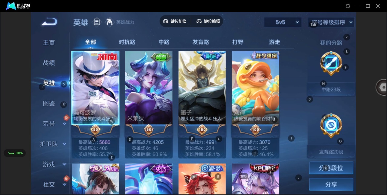 - [11445602]V7 5传说 124英雄 140皮肤 可修改实名 安全保护中 传说皮:地狱之眼,云鹰飞将(小将军) 珍宝阁皮:蔷薇恋人 限定皮:愿照·九州拓(澜年限),鸣野蒿,五谷丰年,匿光追影者,寅虎·赤拳(老虎年限),山海·玄木吟(马可年限) 史诗皮:星界战将,紫霞仙子,黄金分割率,特工魅影,蒙恬荣光圣徽,晚萤,节奏热浪,修罗,水果甜心,绅士熊喵,星夜王子,暗隐猎兽者,幽灵船长,鬼剑武藏,暗渊魔法,心灵战警,纤云弄巧,乘风破浪,逐浪之夏,水晶猎龙者,曙光守护者,原初追逐者,圣诞狂欢,圣诞恋歌,鹰眼统帅,魅力维加斯,黎明之约,赏金猎手,无心,未来纪元-赵云