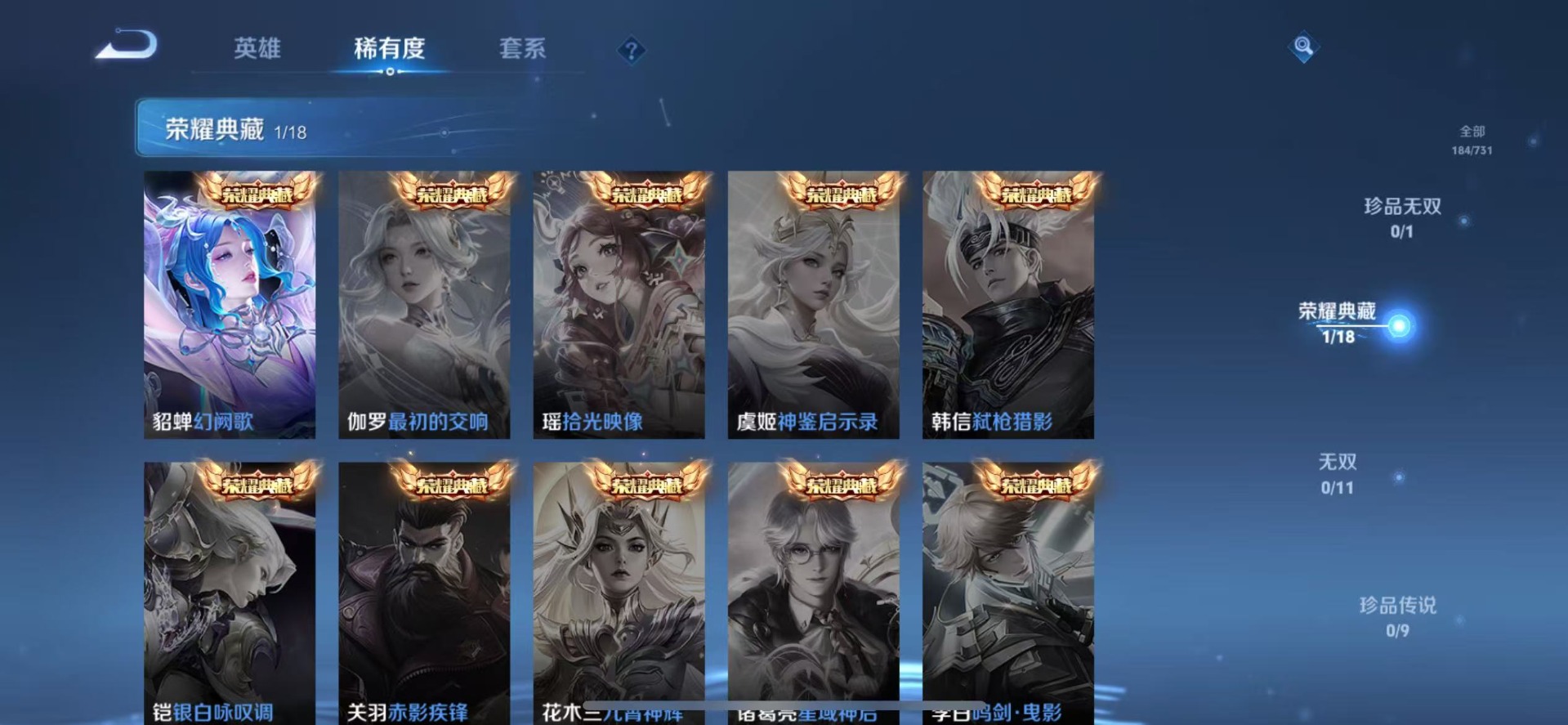 - [11600681]V10 3典藏 2珍品传说 66传说 126英雄 505皮肤 典藏英雄武则天 可修改实名 荣耀水晶:神鉴启示录,天鹅之梦(小乔典藏),倪克斯神谕(宇宙婆娘) 珍品传说:朽木白哉,黑崎一护 传说皮:典韦战鼓燎原,云诺千山,幻光神枪,游龙清影(小青龙),山海·炽霜斩(李信年限),山海·琳琅生(小乔年限),黄金射手座,黄金白羊座,零号·赤焰,地狱火,仲夏夜之梦(大飞蛾),海洋之心,地狱之眼,末日机甲-孙尚香(绿蚂蚱),云霓雀翎,一念神魔,淬星耀世,久胜战神,猫影幻舞,云鹰飞将(小将军),炽阳神光,无双飞将,音你心动-小乔,音你心动-周瑜,胖达荣荣,乞巧织情,时之恋人-刘备(电焊工),飞鸢探春,绛天战甲(鸡嘴战神),超时空战士-狄仁杰,末日机甲-孙策,挚爱之约,挚爱花嫁,音你闪耀(rap皮),碎云,神器·狴犴令,山海·苍雷引(电光曜子),炽翼辉光(娃娃菜牛角包),霜月吟,澜逐花归海,艾琳觅芳踪 珍宝阁皮:优雅恋人,蔷薇恋人,女武神 限定皮:愿照·九州拓(澜年限),愿照·山河定(司空震年限),逐霄战戟,鸣野蒿,至尊宝,白虎志(电光耗子),凤求凰(白切鸡),凤凰于飞,太华(伽罗年限),武陵仙君(小桃花),异界灵契(白毛香),傲雪梅枪,补天,寅虎·展翼(孙膑年限),星穹之声,绯月行,时之彼端,白鹤梁神女,白晶晶,时雨天司(水龙头),神威(电光马子),飞衡(韩信年限),玄嵩(庄周年限),山海·碧波行(瑶年限),瑞麟志(木兰年限),遇见飞天,高山流水,诗剑行,无限倾心-虞姬,匿光决锋者,怒海麟威,降魔,五谷丰年,青龙志(铠年限),冰锋战神,幽恒(沐浴露),武圣,天狼运算者,梁祝,御风骁将(吕布年限),天狼狩猎者,龙胆,逐梦之星,烈魂,岱宗(典韦年限),天狼溯光者,天狼征服者,奔雷神使(牛魔年限),祈雪灵祝(雪兔子),天狼绘梦者,李小龙,逐梦之光,玄武志(苏烈年限),朱雀志(守约年限),永曜之星,辉光之辰,如梦令-嫦娥,如梦令-后羿,奇迹圣诞,默契交锋-兰陵王,默契交锋-花木兰,孙行者,大圣娶亲,天魔缭乱,青春决赛季,冰霜恋舞曲,乒乒小将,蜜橘之夏,神奇女侠,匿光追影者,女儿国国王,寅虎·御盾(廉颇年限),寅虎·瑞焰(虎皮蛋子),寅虎·心曲(虎婆),寅虎·赤拳(老虎年限),时之祈愿-云中君,时之祈愿-瑶(瑶传限),玉兔公主,唐三藏,枫霜尽,时之奇旅-妲己,神器·万象笔,梦圆繁星,山海·