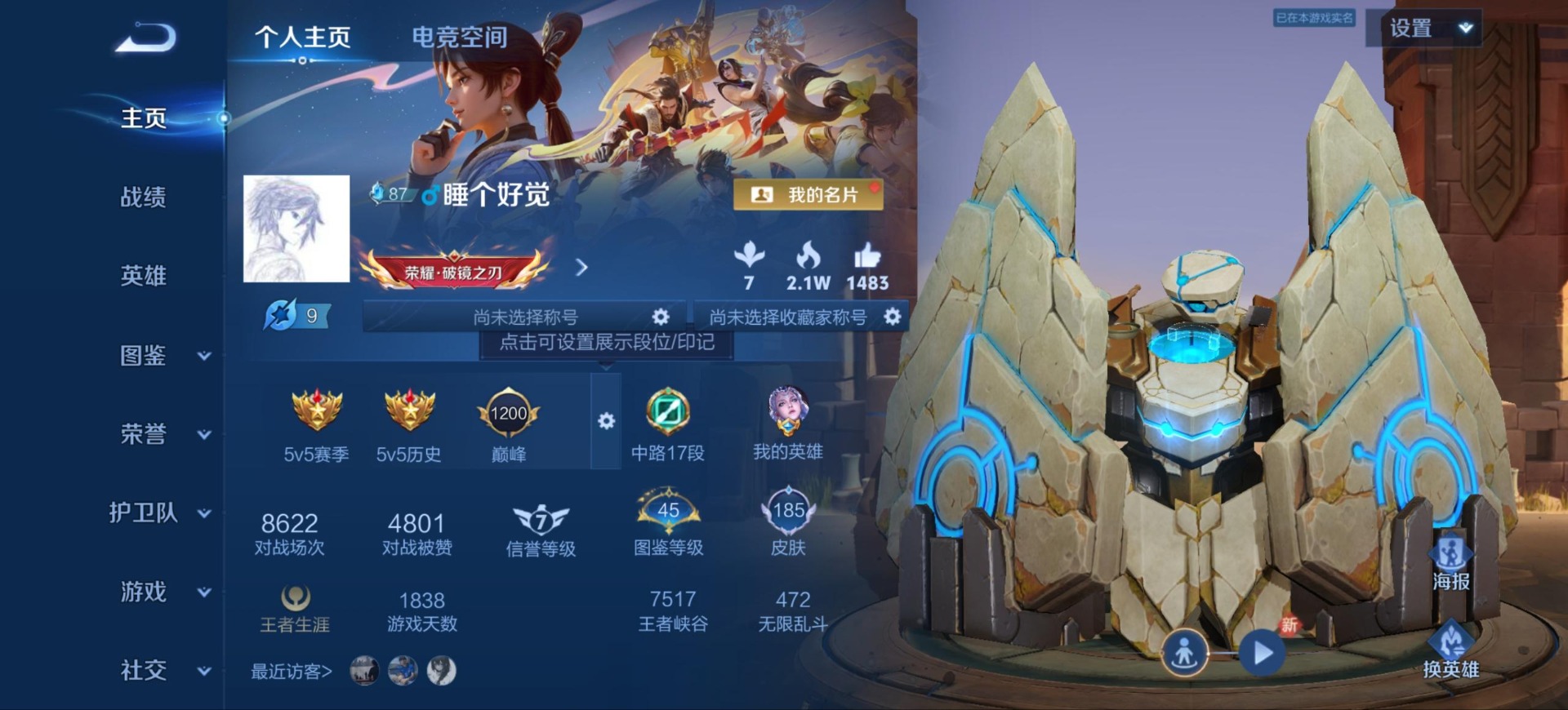 - PX_2095068-【金标干将莫邪 金标高渐离】实名: 可修改 贵族等级: V5 英雄数: 72 皮肤数: 53 传说皮: 画中仙 限定皮: 鸣野蒿,愿照·千秋盛