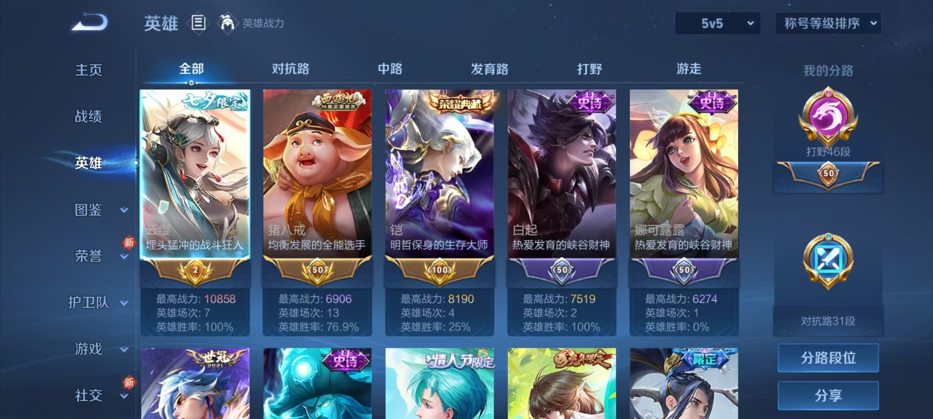 - PX_2091134-实名: 可修改 贵族等级: V4 英雄数: 44 皮肤数: 23 荣耀水晶: 弑枪猎影
