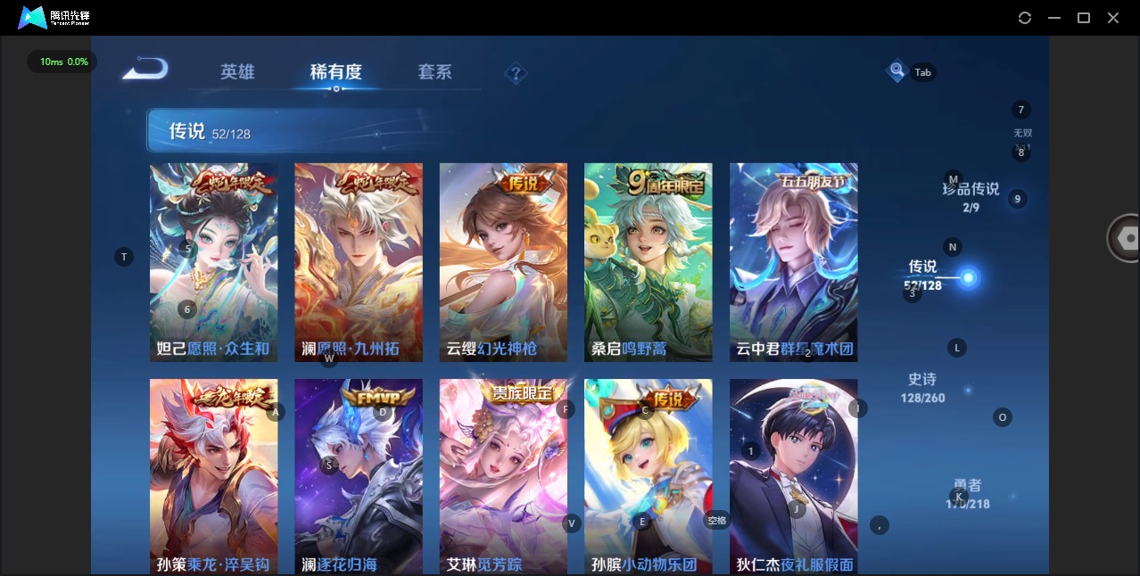 - [11461680]V8 1典藏 1珍品传说 16传说 125英雄 299皮肤 可修改实名 优质装备:赤影疾锋,怪盗基德,久胜战神,一念神魔,末日机甲-孙尚香(绿蚂蚱),仲夏夜之梦(大飞蛾),时之恋人-刘备(电焊工),淬星耀世,末日机甲-孙策,无双飞将,山海·炽霜斩(李信年限),画中仙 传说皮:续相思,幻光神枪 珍宝阁皮:蔷薇恋人,女武神 限定皮:愿照·山河定(司空震年限),逐霄战戟,鸣野蒿,白虎志(电光耗子),五谷丰年,游园惊梦,李小龙,逐梦之影,猪悟能,一生所爱,大圣娶亲,神器·万象笔,山海·玄木吟(马可年限) 史诗皮:鸭鸭历险记-刘禅,绮世丹青,化蝶舞,星界战将,谪仙醉月,龙之律动,石田雨龙,茶境仙,怒海争锋,破空之剑,战舞者,蒙犽顽岩魄,蔬乡物语(鲁班七号),百相守梦-百里守约,星界特工,紫霞仙子,苍穹之光,电玩小子(小书包),白龙吟,黄金分割率,特工魅影,千年之狐,江河有灵,魅语,百解令(蒙犽),高渐离燃音魔法,蒙恬荣光圣徽,无限星赏官,冰冠公主,偶像歌手,龙骑士(小龙虾),末日机甲-吕布,猫狗日记-孙策,乱世虎臣,节奏热浪,修罗,女仆咖啡,摇滚巨星,水果甜心,天才门将,星夜王子,心灵骇客,功夫厨神,德古拉伯爵,暗隐猎兽者,幽灵船长,鬼剑武藏,心灵战警,天秀·启明,舞动绿茵,地狱岩魂,纤云弄巧,缤纷独角兽,乘风破浪,逐浪之夏,月团寄思,水晶猎龙者,曙光守护者,箭羽风息,唤灵魅影,金属风暴,原初追逐者,圣诞狂欢,圣诞恋歌,鹰眼统帅,魅力维加斯,无心,未来纪元-赵云