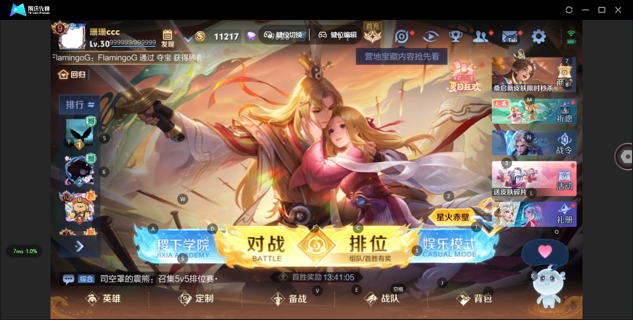 - [11602143]V7 1典藏 6传说 122英雄 229皮肤 可修改实名 荣耀水晶:鸣剑·曳影 传说皮:地狱之眼,云鹰飞将(小将军),炽阳神光 珍宝阁皮:妄想食味,蔷薇恋人,女武神 限定皮:鸣野蒿,白虎志(电光耗子),高山流水,五谷丰年,游园惊梦,梁祝,天狼狩猎者,祈雪灵祝(雪兔子),李小龙,默契交锋-花木兰,山海·玄木吟(马可年限) 史诗皮:星界战将,蒙犽顽岩魄,超元猎域,电玩小子(小书包),黄金分割率,特工魅影,千年之狐,江河有灵,蒙恬荣光圣徽,冰冠公主,偶像歌手,魅语,电玩·爆裂旋风,暗夜猫娘,末日机甲-吕布,猫狗日记-孙策,猫狗日记-大乔,时之恋人-孙尚香,节奏热浪,修罗,女仆咖啡,水果甜心,绅士熊喵,星夜王子,暗隐猎兽者,幽灵船长,鬼剑武藏,舞动绿茵,纤云弄巧,繁星吟游(呼啦呼啦),拒霜思,缤纷独角兽,乘风破浪,逐浪之夏,水晶猎龙者,曙光守护者,热力回旋,箭羽风息,金属风暴,原初追逐者,圣诞狂欢,圣诞恋歌,鹰眼统帅,黎明之约,赏金猎手,无心,未来纪元-赵云