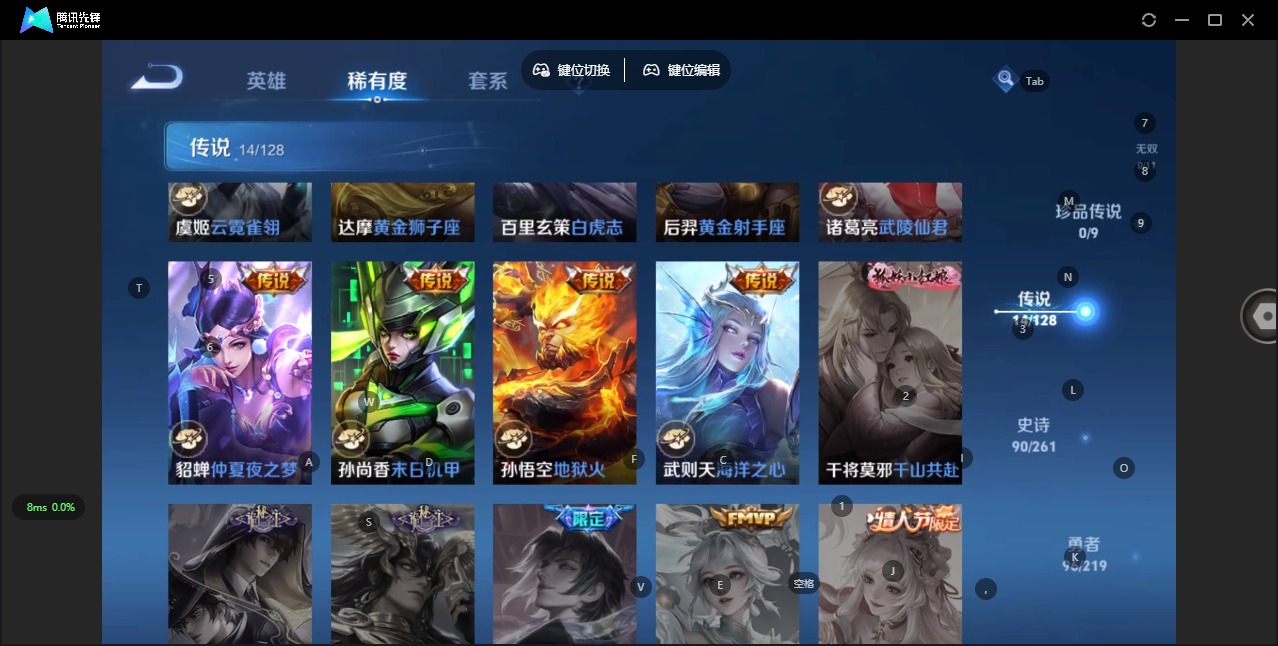 - [11250987]V8 1典藏 21传说 124英雄 357皮肤 可修改实名 优质装备:杀手不太冷,黄金狮子座,云鹰飞将(小将军),绛天战甲(鸡嘴战神),猫影幻舞,一念神魔,云霓雀翎,末日机甲-孙尚香(绿蚂蚱),地狱火,零号·赤焰,胖达荣荣,时之恋人-刘备(电焊工),挚爱之约,挚爱花嫁,山海·炽霜斩(李信年限) 珍宝阁皮:妄想食味,优雅恋人,蔷薇恋人,女武神,玩趣恶龙 限定皮:逐霄战戟,鸣野蒿,至尊宝,凤求凰(白切鸡),飞衡(韩信年限),瑞麟志(木兰年限),遇见飞天,高山流水,齐天大圣,五谷丰年,游园惊梦,梁祝,逐梦之星,李小龙,玄武志(苏烈年限),朱雀志(守约年限),如梦令-后羿,孙行者,猪悟能,大圣娶亲,天魔缭乱,冰霜恋舞曲,美猴王,启示之音,无尽星芒,唐三藏 史诗皮:星界战将,灵蛊蚀心,紫霞仙子,苍穹之光,电玩小子(小书包),黄金分割率,特工魅影,千年之狐,蒙恬荣光圣徽,偶像歌手,龙骑士(小龙虾),白蛇,暗夜猫娘,无限星赏官,晚萤,冰冠公主,青蛇,末日机甲-吕布,猫狗日记-孙策,猫狗日记-大乔,乱世虎臣,节奏热浪,修罗,女仆咖啡,摇滚巨星,水果甜心,绅士熊喵,天才门将,星夜王子,心灵骇客,时之奇旅-安琪拉,功夫厨神,德古拉伯爵,暗隐猎兽者,幽灵船长,鬼剑武藏,心灵战警,舞动绿茵,地狱岩魂,诗语江南,纤云弄巧,繁星吟游(呼啦呼啦),拒霜思,缤纷独角兽,乘风破浪,逐浪之夏,龙鼓争鸣,水晶猎龙者,曙光守护者,箭羽风息,金属风暴,原初追逐者,圣诞狂欢,圣诞恋歌,鹰眼统帅,王者之锤,暗夜贵公子,魅力维加斯,黎明之约,千筹问战,无心,未来纪元-赵云