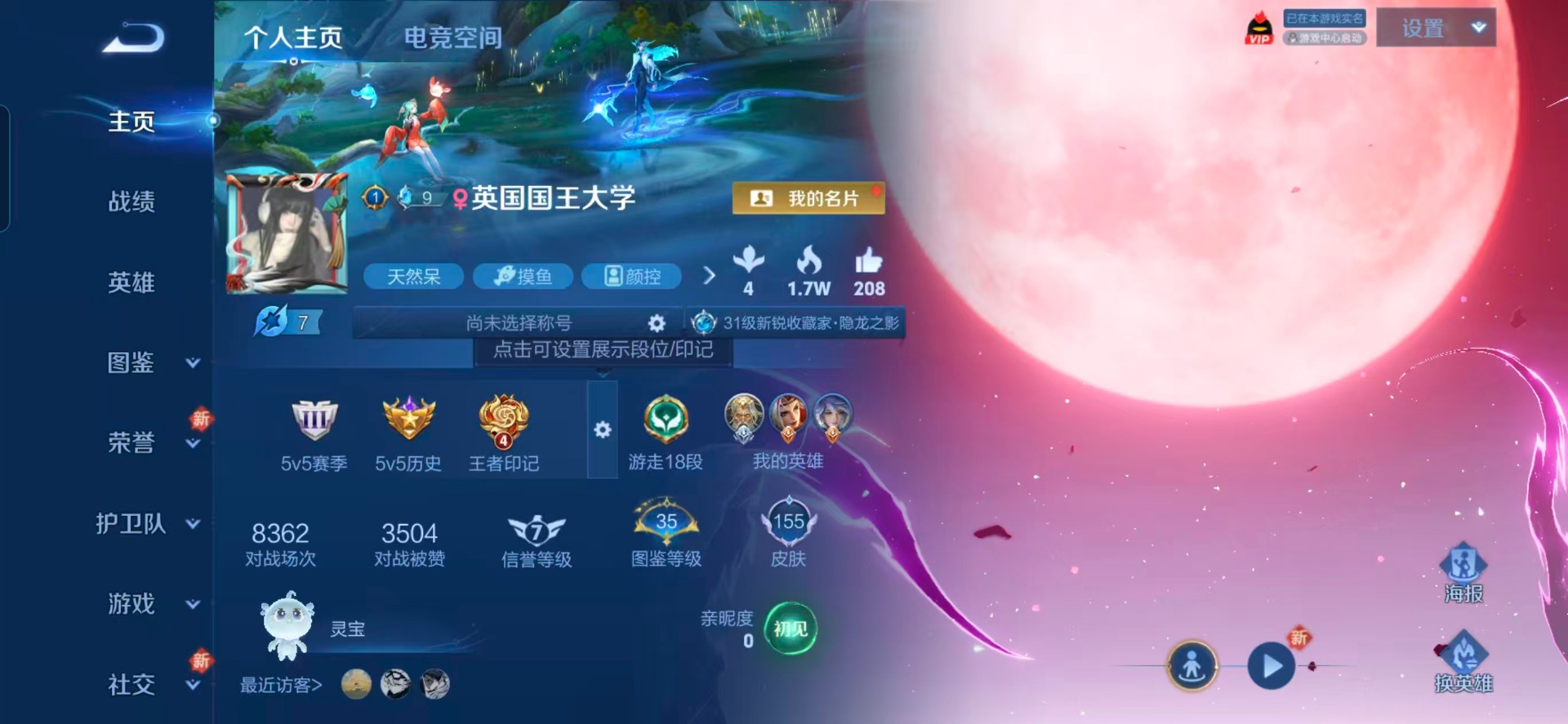 - [12198472]V7 6传说 105英雄 102皮肤 可修改实名 营地被封禁 优质装备:久胜战神,地狱火,仲夏夜之梦(大飞蛾),李逍遥,涂山容容 珍宝阁皮:玩趣恶龙 限定皮:太华(伽罗年限),时雨天司(水龙头),岱宗(典韦年限),李小龙 史诗皮:龙之律动,百相守梦-周瑜,百相守梦-黄忠,黄金分割率,特工魅影,晚萤,节奏热浪,修罗,水果甜心,鬼剑武藏,地狱岩魂,纤云弄巧,繁星吟游(呼啦呼啦),逐浪之夏,曙光守护者,鹰眼统帅,魅力维加斯