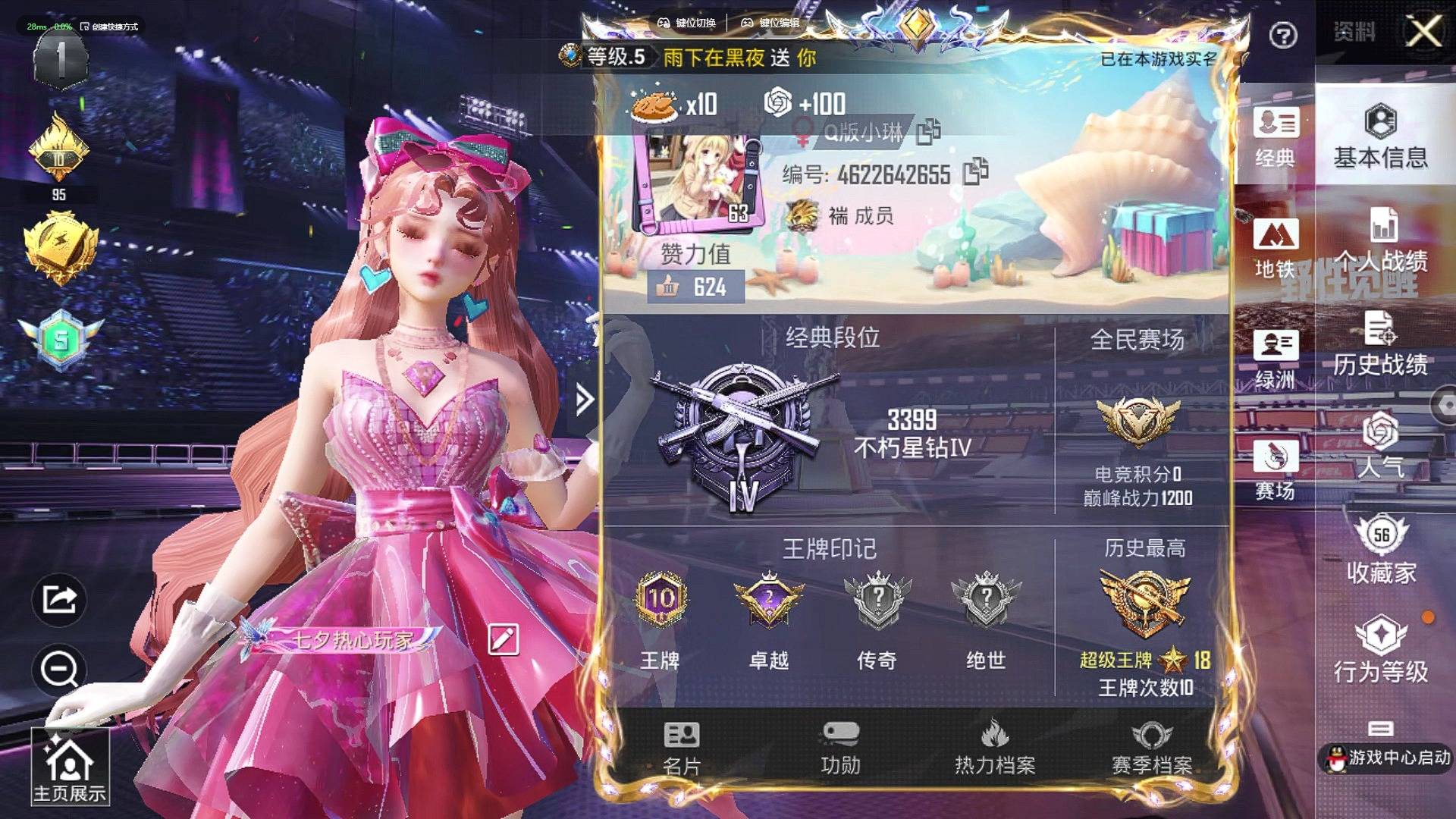 [12063698]8粉装 5特效枪 10印记 可二次 可修改实名 优质装备:甜心巧克力,宝贝奶油派,天使彩虹糖,花间之火,SCAR-L青春物语,GROZA旋转彩虹,七级GROZA-旋转彩虹,七级SCAR-L-青春物语,AUG-暖羊咩咩,樱桃泡泡,冷漠罗丽,荧海星豚,Kar98K-巳巳如意 热门装扮:炫光之旅,鹰眼刺客 稀有枪皮:DP-28-豹影疾电 五级特效枪:五级Kar98K-巳巳如意,五级DP-28-豹影疾电,五级AUG-暖羊咩咩 紫色装扮:SS23特训,SS31特训套装,云朵鹅,彩虹兔,雪绒豹,SS33特训套装,SS21特训,绚烂繁星,熠彩粉晶,田园牧歌,轻风白浪,和煦暖阳,SS22特训,顶瓜瓜,冷焰舞者,夏日倾情,夜莺强袭者,完美偶像,帅气教官,萌趣咩咩,时希公主,军械专家,娇憨猪猪,粉团憨憨,黄色名流,青年教官,魅力单车,鹤鸣,麻辣教官,黎明保卫者,黑色伏地魔,龙的传人,冰河战士,龙魂突击队,蝶变,霓虹街区,酷潮明星,软软马卡龙,野性战心,长空猛禽,雨林探路者,雪鹰学院,荒原牛仔,街头潮人,清新柠檬,湖蓝色名流,热血青春,热血骑手,海岛探路者,极地朋克,柠萌假日,血色贵族,绮丽涂鸦,缤纷果语,荣耀,蓝色运动,特战装甲,特殊使命,特训学院,猛禽,王牌教练,空岛之星,白熊同盟,白色伏地魔,SS29特训,SS28特训,鱼渊荷华,玉兔迎春,燕燕于飞,异域银装,竞技名士,惊鸿侠骨,SS24特训(SS24特训套装),SS25特训,锦衣飞扬,SS27特训,明鸳圣池,浪漫天命,SS26特训,淡雅花蕊,纯白誓言,暗夜契约,本愿之火,大橘大利,星渊小夜曲,SS32特训服(SS32特训套装),蓝冰羽,绯格组合,鲛海歌灵,紫幽梦,粉恋花,蜜桃派对,恋语绒绒,光之冒险,无烬之地,漫步者,冰冻风暴,弄潮海豚 优质战备:辉羽雀灵降落伞,雀灵庇佑飞行器,冷漠罗丽降落伞,喜羊羊与灰太狼降落伞,圣域龙灵降落伞,圣域金龙飞行器,暗夜鎏金降落伞,音爆索尼克降落伞,第五大道降落伞,甜心宝贝降落伞,春暖花开降落伞,甜蜜誓约降落伞,童趣迷兔降落伞 二级优质战备:二级圣域金龙飞行器