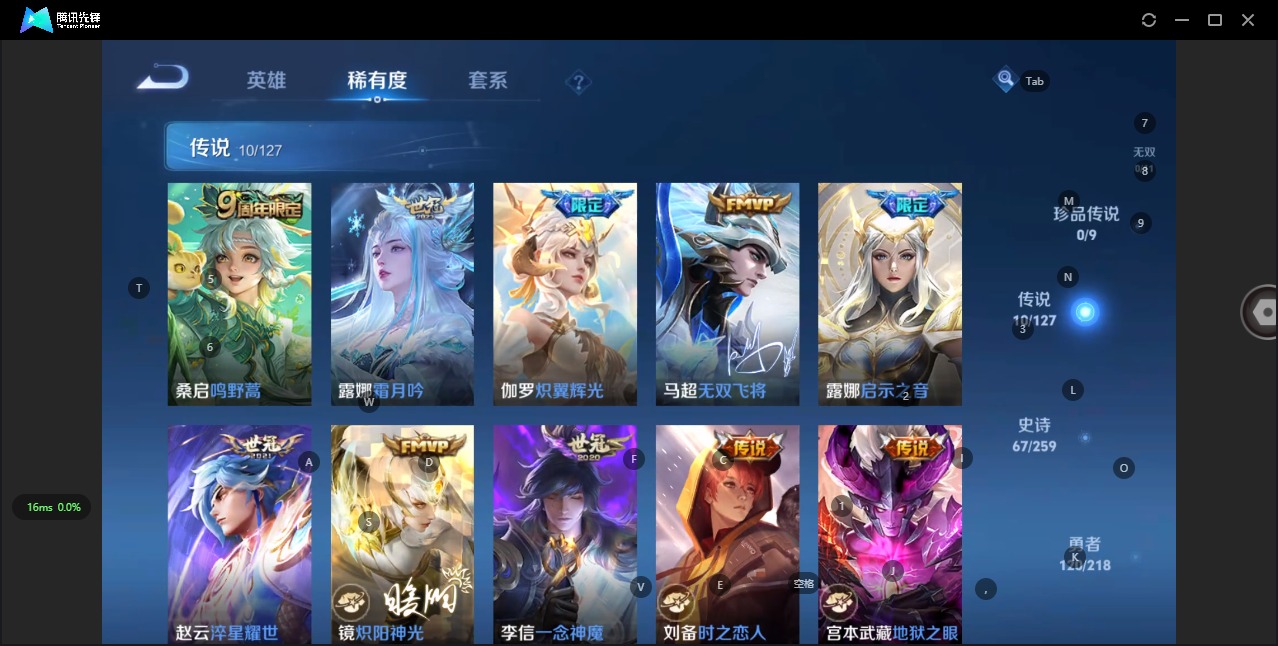- [12267040]V8 1典藏 14传说 125英雄 296皮肤 可修改实名 优质装备:九霄神辉(木兰典藏),黄金狮子座,冠军飞将,黄金白羊座,末日机甲-孙尚香(绿蚂蚱),地狱火,仲夏夜之梦(大飞蛾),地狱之眼 传说皮:幻光神枪 珍宝阁皮:女武神,玩趣恶龙 限定皮:愿照·岁时盈(虞姬年限),愿照·众生和(妲己年限),鸣野蒿,至尊宝,白虎志(电光耗子),凤求凰(白切鸡),白鹤梁神女,瑞麟志(木兰年限),高山流水,五谷丰年,青龙志(铠年限),冰锋战神,梁祝,天狼狩猎者,天狼溯光者,逐梦之音,天狼征服者,奔雷神使(牛魔年限),逐梦之影,玄武志(苏烈年限),朱雀志(守约年限),猪悟能,引擎之心,冰霜恋舞曲,神奇女侠 史诗皮:苍鳞隐世,器灵·浮梦炉,龙之律动,茶境仙,蒙犽顽岩魄,星界特工,炽弈燎原,破空之剑,涂山红红,东方月初,芈月浮光幕影,星界战将,紫霞仙子,白龙吟,黄金分割率,特工魅影,千年之狐,江河有灵,龙骑士(小龙虾),百解令(蒙犽),蒙恬荣光圣徽,晚萤,魅语,无限星赏官,青蛇,偶像歌手,末日机甲-吕布,猫狗日记-孙策,猫狗日记-大乔,乱世虎臣,节奏热浪,女仆咖啡,摇滚巨星,水果甜心,星夜王子,心灵骇客,功夫厨神,德古拉伯爵,暗隐猎兽者,幽灵船长,鬼剑武藏,心灵战警,舞动绿茵,地狱岩魂,拒霜思,缤纷独角兽,乘风破浪,逐浪之夏,月团寄思,水晶猎龙者,曙光守护者,金属风暴,原初追逐者,圣诞狂欢,圣诞恋歌,鹰眼统帅,魅力维加斯,黎明之约,未来纪元-赵云