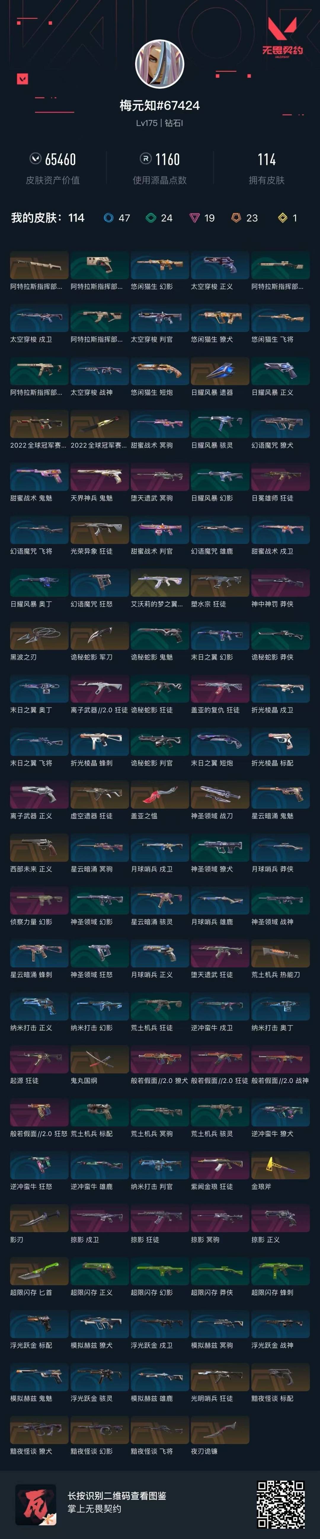 [11930520]23橙皮 1金皮 19紫皮 114皮肤 26英雄 120卡面 1160已用源晶 钻石 优质装备:黯夜怪谈套装,掠影套装,狂徒-塑水宗,狂徒-艾沃莉的梦之翼,狂徒-光明哨兵,狂徒-掠影,狂徒-紫阙金琅,狂徒-盖亚的复仇,幻影-侦察力量,冥驹-堕天遗武,正义-离子武器,狂徒-日冕雄师,幻影-黯夜怪谈,正义-掠影,冥驹-掠影,戍卫-掠影,金琅斧,盖亚之愠,狂徒-起源,鬼魅-天界神兵,黑波之刃,夜刃诡镰,匕首-超限闪存,影刃,荒土机兵热能刀,鬼丸国纲,神圣领域 战刀,诡秘蛇影,阿特拉斯指挥部 亮点皮肤:幻影-2022全球冠军赛,2022全球冠军赛 蝴蝶刀 套装:般若假面//2.0套装,2022全球冠军赛 佩枪皮肤:狂怒-般若假面//2.0,标配-黯夜怪谈,正义-西部未来 步枪皮肤:狂徒-般若假面//2.0,狂徒-虚空遗器,獠犬-般若假面//2.0,獠犬-黯夜怪谈,狂徒-光荣异象,狂徒-离子武器2.0,狂徒-堕天遗武 狙击枪皮肤:飞将-黯夜怪谈,莽侠-神中神罚 机枪皮肤:战神-般若假面//2.0