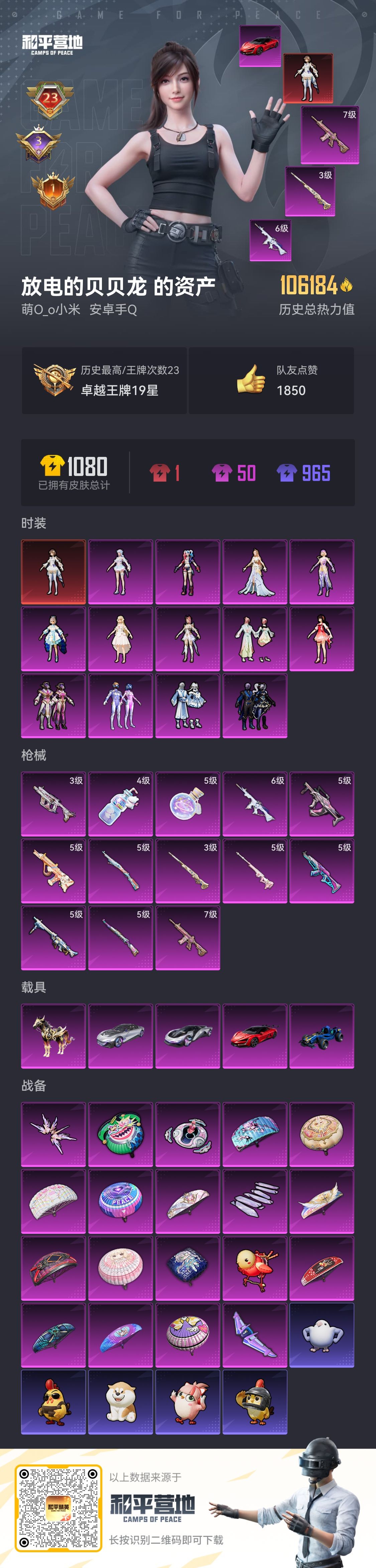 - [12186164]地铁满天赋【特价急出/详情看图】:安卓 微信-1神装-7粉装-14特效枪-4载具-5粉色飞行器-65531热力值-10王牌印记-103套装-186枪皮【红色神装等级】:魔童闹海-敖丙(一级)【红色角色神装】:魔童闹海-敖丙【热门品类】:粉装-梦幻火箭,套装-龟仙人【粉色载具】:玛莎拉蒂Quattroporte(夜幕蓝),疾风龙骑,星梦玉骢,黑曜夜骑【粉色套装】:粉装-梦幻火箭,粉装-天星战神,角色-茉莉星,角色-美琪,角色-冷漠罗丽,角色-荧海星豚,角色-羊梦糖心【粉色枪皮等级】:AKM-炫紫旋律(五级),SCAR-L-纯梦嫁纱(四级),M416-心之恋语(二级),M416-墨龙九天(一级),M416-灵猫魔法师(三级),AUG-星梦奇缘(三级),蜜獾-荧海星豚(四级),Vector-绯穹魔姬(四级),P90-魔童闹海 敖丙(三级),SKS-碧影闪光(四级),M249-彩虹甜喵(五级),DP-28-豹影疾电(五级),镰刀-幽影之判(四级),破片手榴弹-美味星星糖(五级)【粉色枪皮】:AKM-炫紫旋律,SCAR-L-纯梦嫁纱,M416-心之恋语,M416-墨龙九天,M416-灵猫魔法师,AUG-星梦奇缘,蜜獾-荧海星豚,Vector-绯穹魔姬,P90-魔童闹海 敖丙,SKS-碧影闪光,M249-彩虹甜喵,DP-28-豹影疾电,镰刀-幽影之判,破片手榴弹-美味星星糖