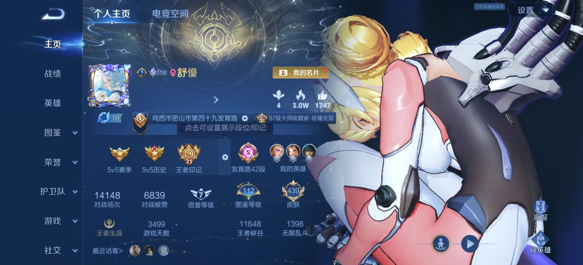 - [11471652]V7 1典藏 123英雄 206皮肤 可修改实名 女号 优质装备:星空梦想(太空人) 珍宝阁皮:蔷薇恋人,女武神 限定皮:山海·碧波行(瑶年限),高山流水,五谷丰年,逐梦之光,霸王别姬-虞姬,奇迹圣诞,时之奇旅-妲己 史诗皮:遇见神鹿,电玩小子(小书包),蒙恬荣光圣徽,偶像歌手,龙骑士(小龙虾),暗夜猫娘,冰冠公主,青蛇,女仆咖啡,水果甜心,天才门将,暗隐猎兽者,鬼剑武藏,纤云弄巧,繁星吟游(呼啦呼啦),拒霜思,金属风暴,原初追逐者,圣诞恋歌,鹰眼统帅,黎明之约,无心