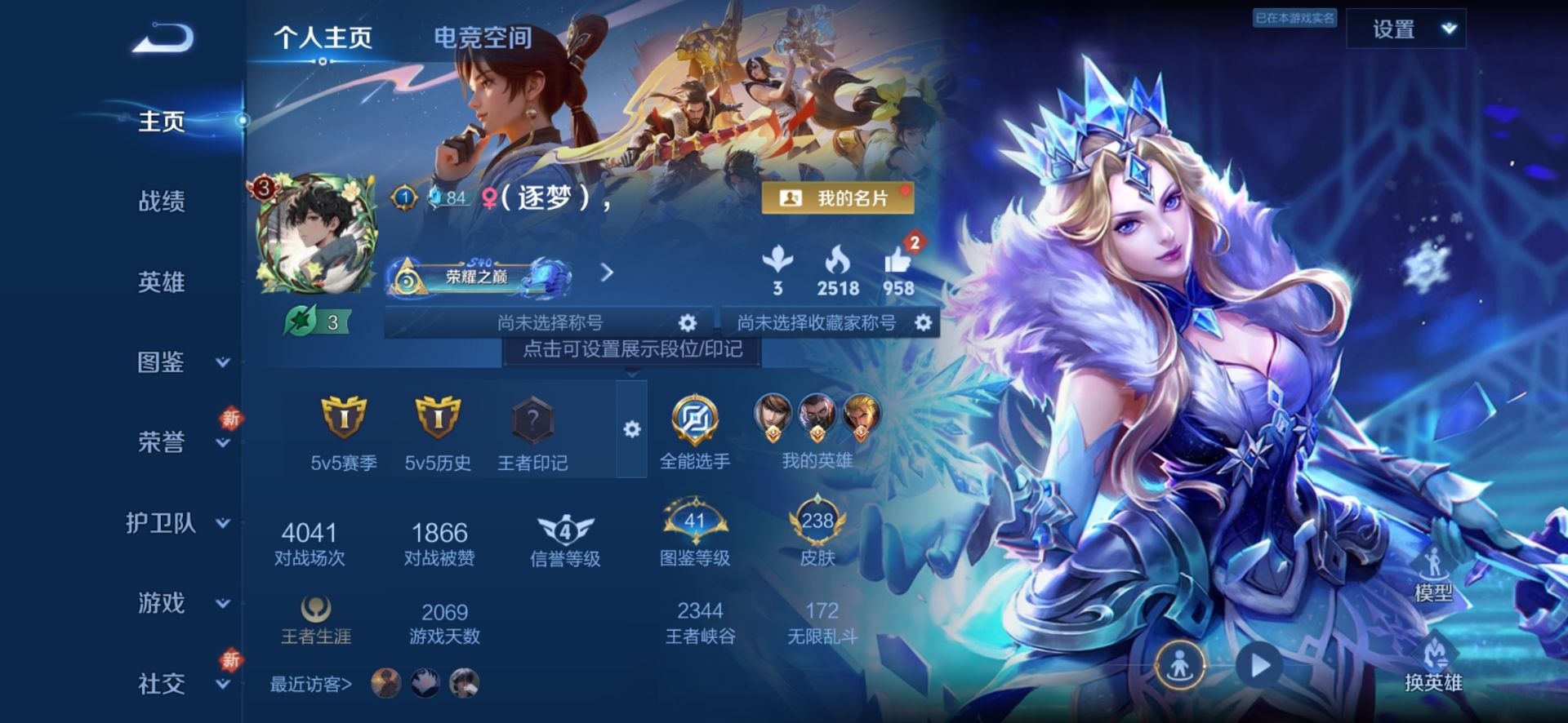 - PX_2049538-实名: 可修改 性别: 男号 贵族等级: V6 英雄数: 120 皮肤数: 168 限定皮: 冰锋战神,遇见飞天,李小龙,游园惊梦,梁祝,天狼狩猎者,凤求凰,美猴王,至尊宝,武陵仙君,高山流水,鸣野蒿 亮点: 【店长推荐精品号】3印记,3传说皮,李白凤求凰,诸葛亮武陵仙君,1887星币,消耗任意点券恢复贵6 。