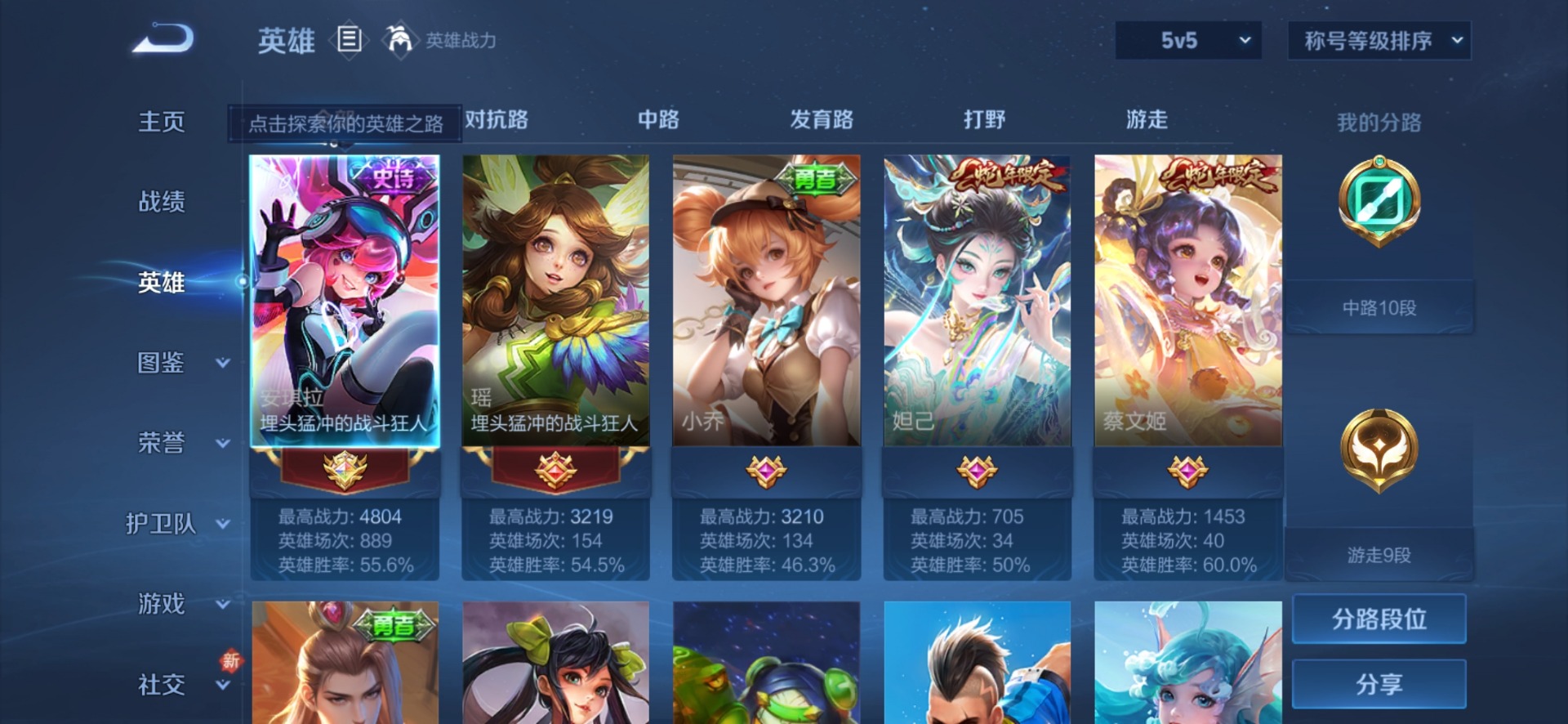 宫本武藏鬼剑武藏,花木兰水晶猎龙者,安琪拉心灵骇客,伽罗箭羽风息,王昭君偶像歌手,刘禅天才门将