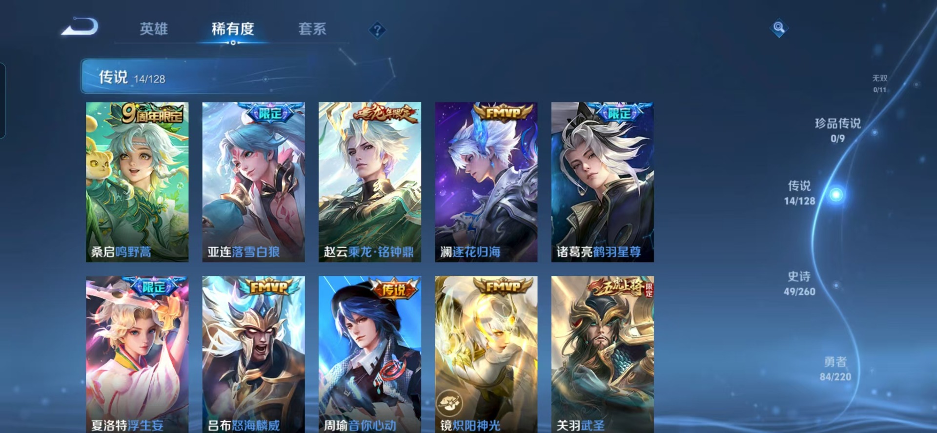 - [12256215]V8 1典藏 1无双 6传说 124英雄 226皮肤 可修改实名 孙悟空大国标 优质装备:天鹅之梦(小乔典藏),天机白泽,炽阳神光,末日机甲-孙尚香(绿蚂蚱),无双飞将,诡秘之主 珍宝阁皮:优雅恋人 限定皮:夏侯惇霜北刀,至尊宝,遇见飞天,梁祝,天狼狩猎者,天狼绘梦者,李小龙,辉光之辰,大圣娶亲,引擎之心,冰霜恋舞曲,蜜橘之夏 史诗皮:龙之律动,百相守梦-周瑜,紫霞仙子,电玩小子(小书包),特工魅影,蒙恬荣光圣徽,冰冠公主,偶像歌手,乱世虎臣,修罗,女仆咖啡,水果甜心,绅士熊喵,天才门将,星夜王子,功夫厨神,暗隐猎兽者,幽灵船长,鬼剑武藏,繁星吟游(呼啦呼啦),乘风破浪,曙光守护者,原初追逐者,鹰眼统帅,魅力维加斯,赏金猎手,未来纪元-赵云