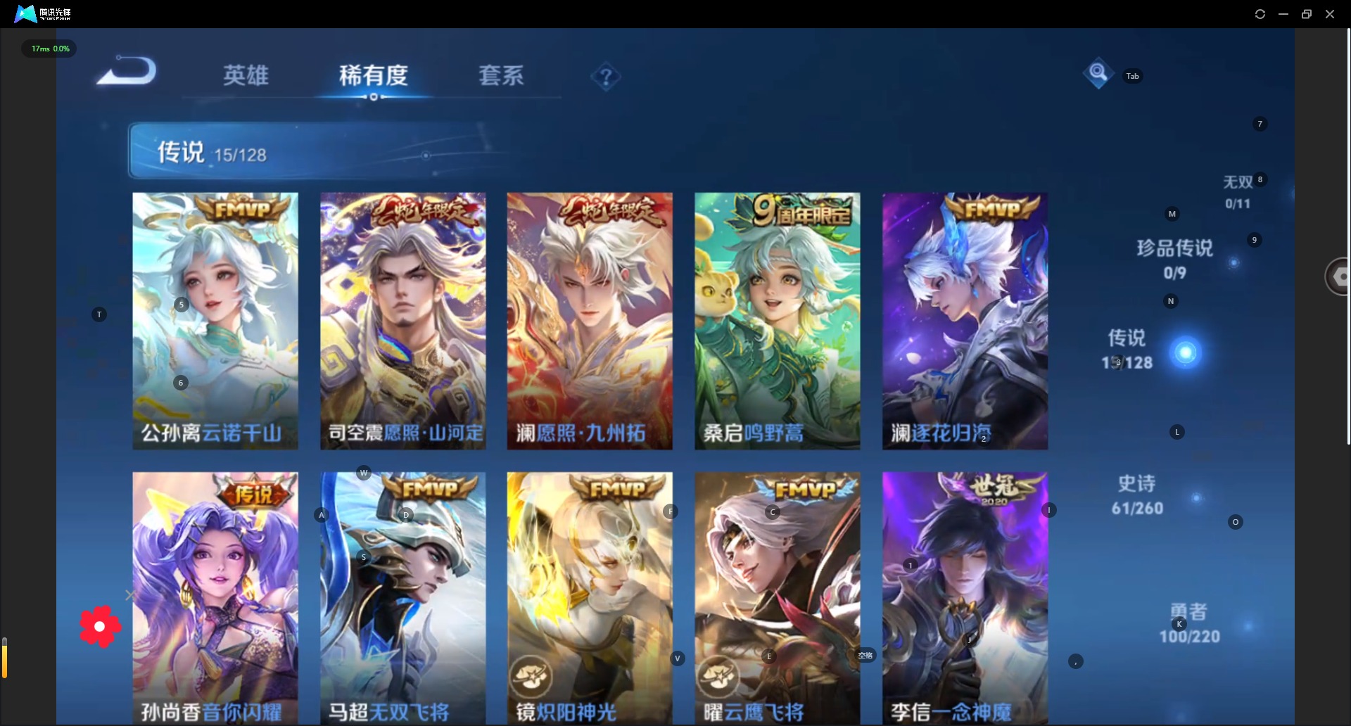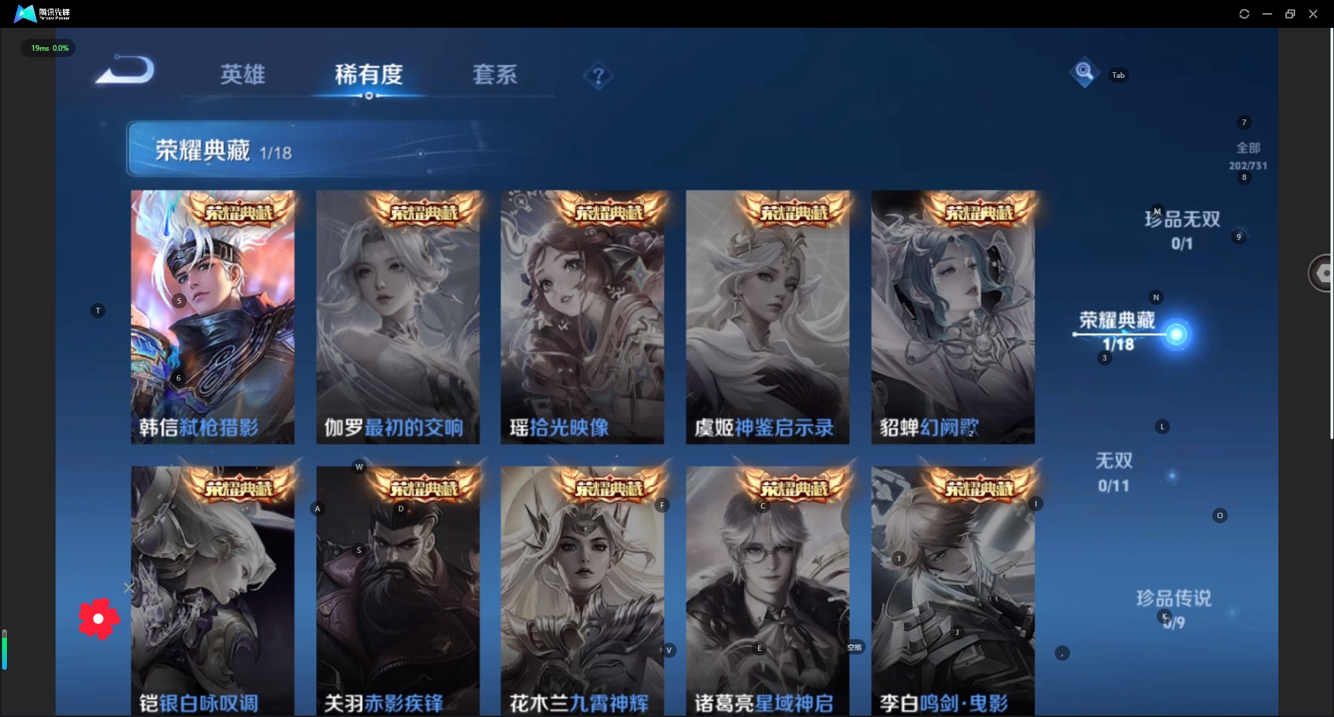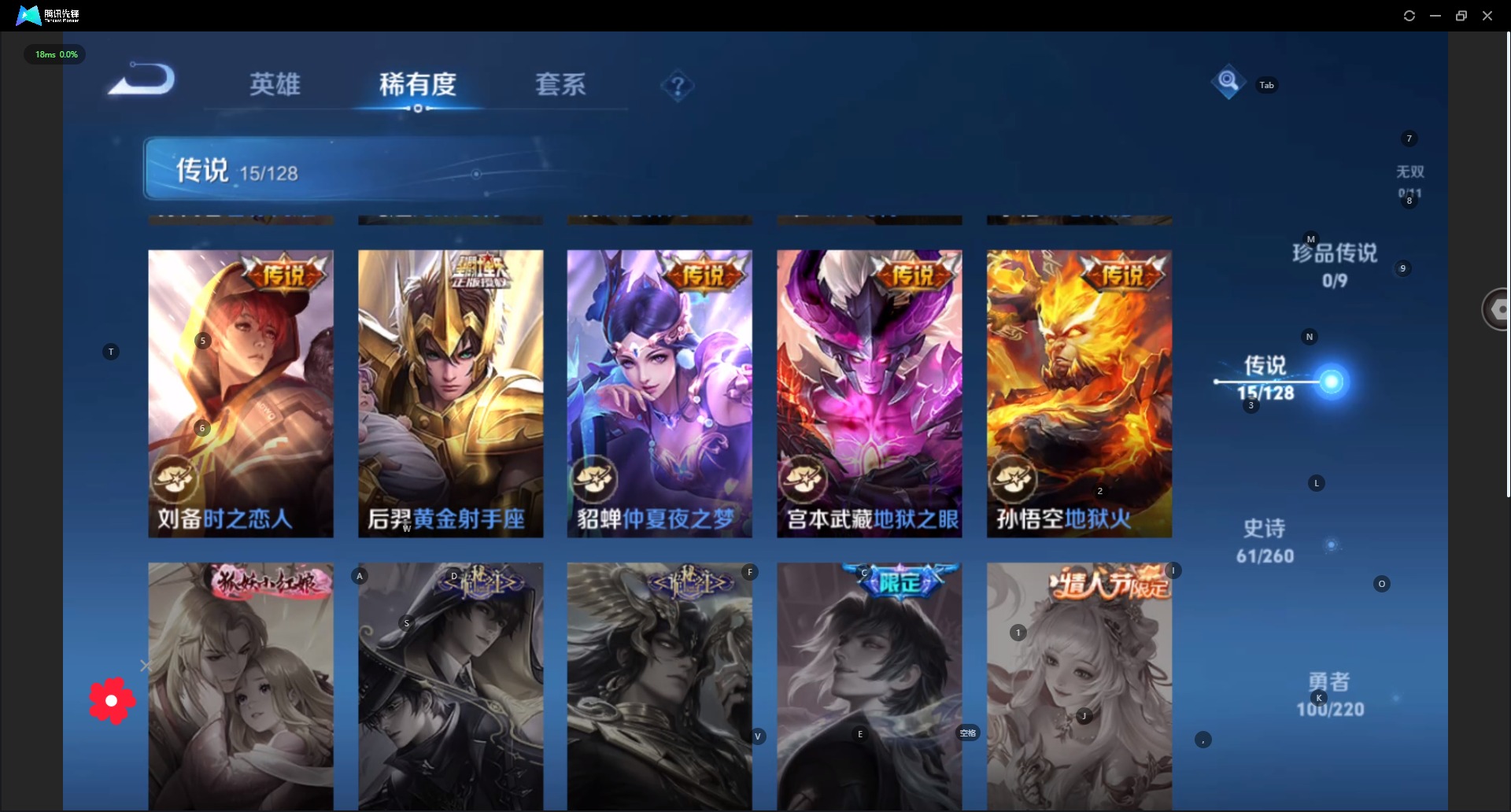 - [11852667]猴子典藏,久胜,紫霞,-可二次-108英雄-165皮肤-1典藏-7传说-31史诗 辉光之辰-后羿 街头霸王-韩信