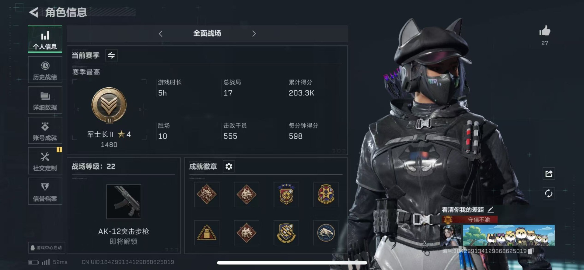 [11884527]总资产:587.8M 1近战传说 6传说枪械 哈夫币:423K 高级安全箱(9.17到期) 可二次 可修改实名 优质装备:近战-北极星 烽火地带段位:三角洲巅峰 全面战场段位:军士长 传说武器皮肤:AK-12突击步枪-夜鹰,腾龙突击步枪-捞点薯条,AK-12突击步枪-特斯拉线圈,CAR-15突击步枪-阿米娅,M4A1突击步枪-阿米娅 史诗武器皮肤:AUG突击步枪-蝮蛇,Ash-12战斗步枪-守夜人,M16A4突击步枪-竞赛选手,AS Val突击步枪-尖端治疗,SG552突击步枪-尖端治疗,MP5冲锋枪-深海恐惧,AKM突击步枪-林中猎手,腾龙突击步枪-无垢