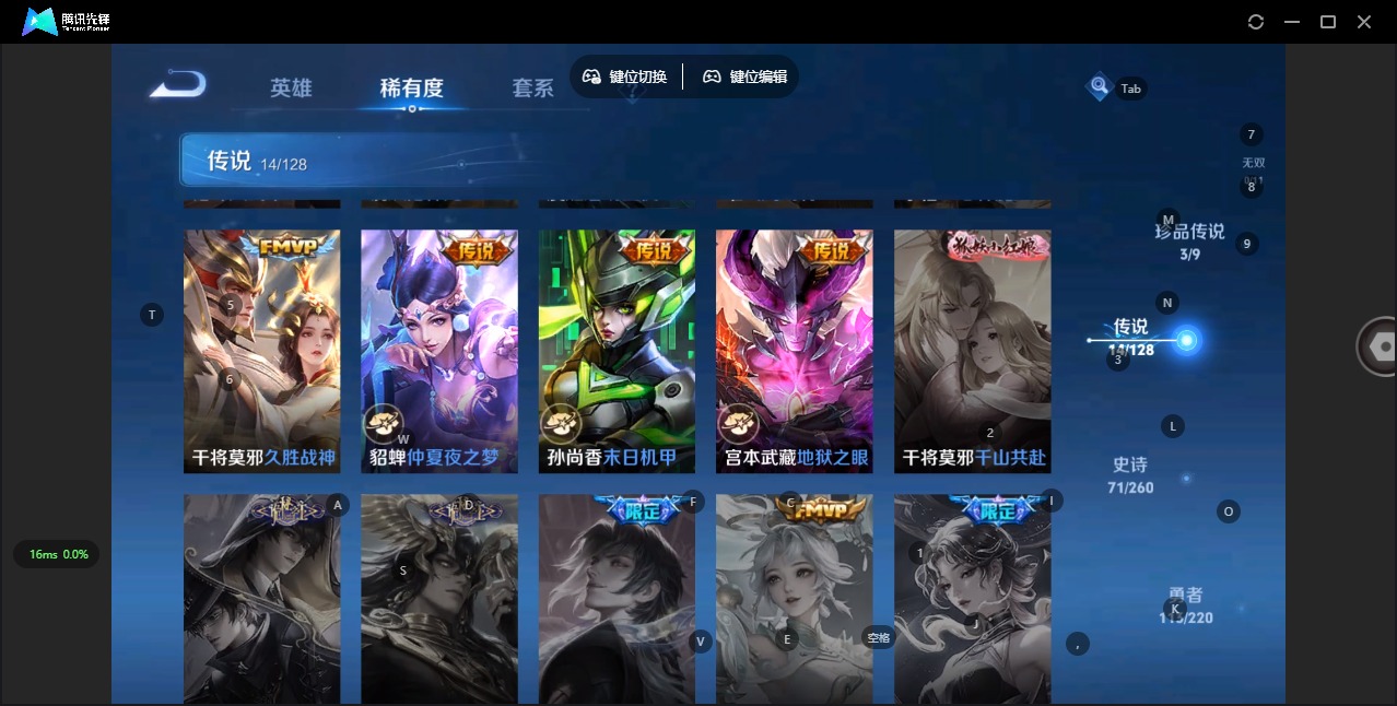 - [11602388]V7 1典藏 2珍品传说 6传说 121英雄 203皮肤 可修改实名 荣耀水晶:银白咏叹调(倪克斯侍卫) 珍品传说:酷洛米之心,黑崎一护 传说皮:地狱之眼,炽阳神光,乞巧织情 珍宝阁皮:蔷薇恋人 限定皮:愿照·九州拓(澜年限),愿照·山河定(司空震年限),逐霄战戟,鸣野蒿,梁祝,引擎之心 史诗皮:茶境仙,糖绘人间,鸭鸭历险记-刘禅,龙之律动,雪豹·霜爪,藏狐·褐绒,石田雨龙,百相守梦-百里守约,百相守梦-黄忠,埋骨钱,乘龙·聚宝船(安琪拉年限),炽弈燎原,化蝶舞,破空之剑,电玩小子(小书包),白龙吟,黄金分割率,特工魅影,千年之狐,江河有灵,高渐离燃音魔法,百解令(蒙犽),冰冠公主,青蛇,偶像歌手,电玩·爆裂旋风,末日机甲-吕布,猫狗日记-孙策,猫狗日记-大乔,时之恋人-孙尚香,乱世虎臣,节奏热浪,女仆咖啡,水果甜心,绅士熊喵,星夜王子,心灵骇客,暗隐猎兽者,幽灵船长,鬼剑武藏,心灵战警,舞动绿茵,纤云弄巧,拒霜思,缤纷独角兽,乘风破浪,逐浪之夏,水晶猎龙者,箭羽风息,金属风暴,圣诞恋歌,鹰眼统帅,魅力维加斯,未来纪元-赵云