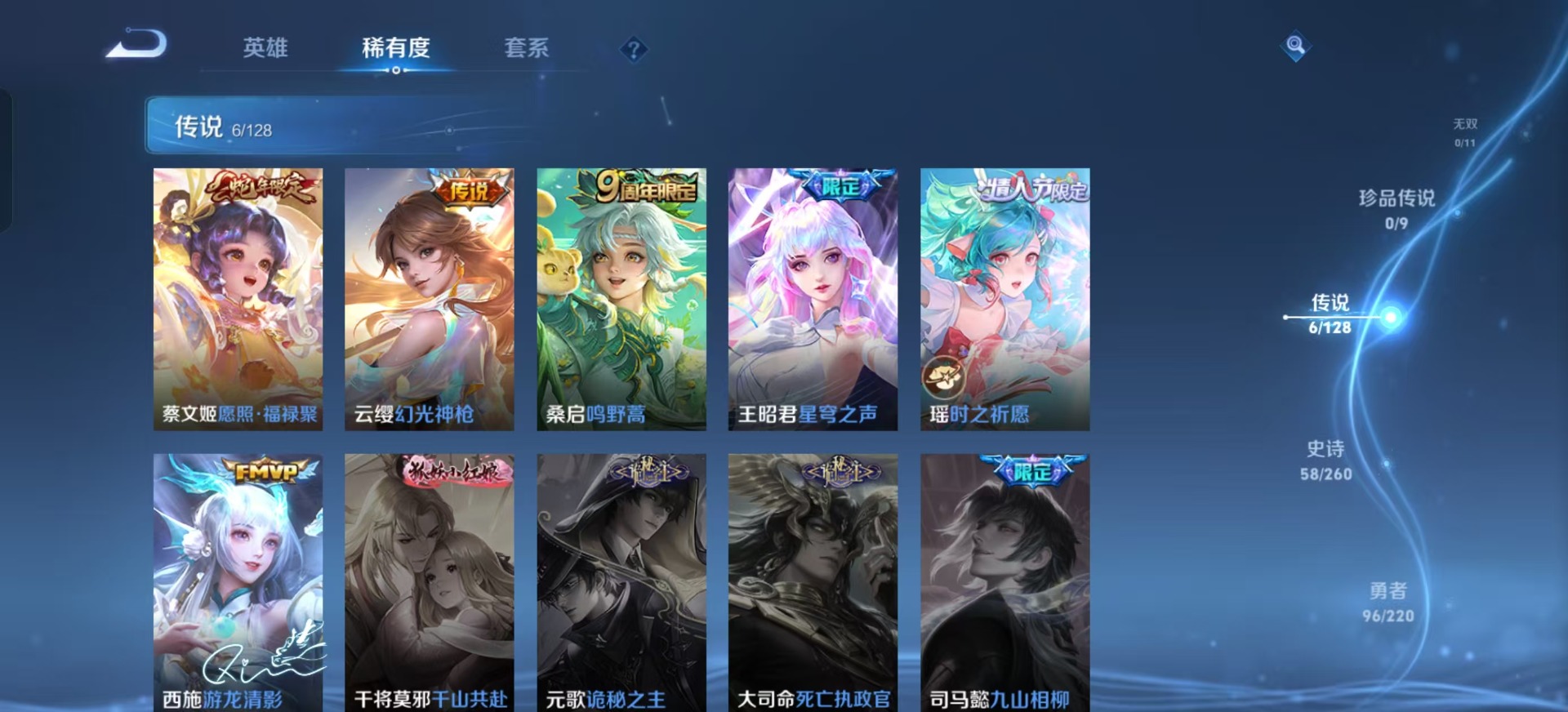 盾山梦圆繁星,公孙离玉兔公主,上官婉儿梁祝,马可波罗山海·玄木吟,西施至美·乘鲤谣,桑启鸣野蒿,蔡文姬愿照·福禄聚,瑶时之祈愿,王昭君星穹之声