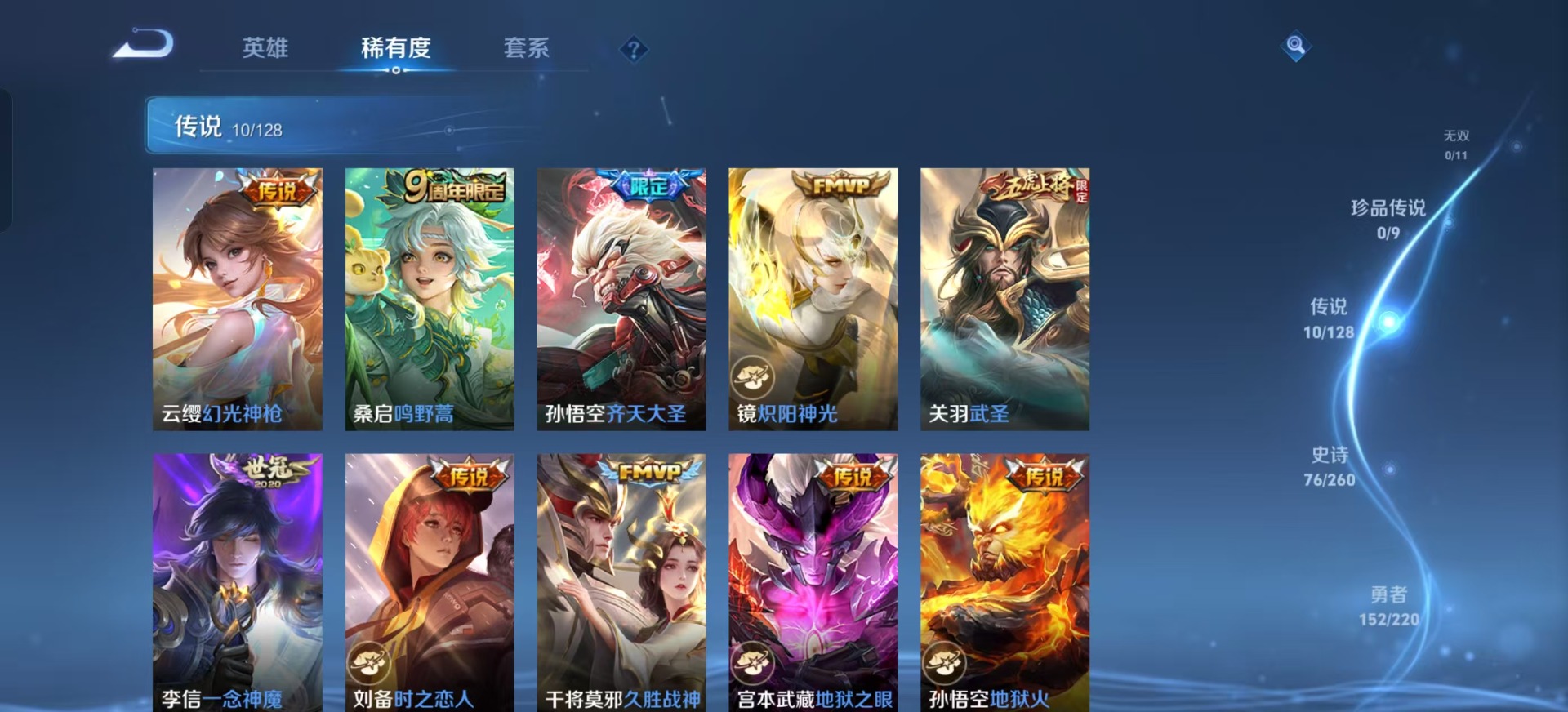- PX_2093823-贵族8/皮肤267/典藏1/传说22/史诗88/英雄123/鸣剑曳影/曜器灵螭龙剑/孙策时之奇旅/蔷薇恋人/玩趣恶龙/特工战影/超时空战士男/地狱之眼/末日机甲女/黄金狮子座/久胜战神/时之恋人男/一念神魔/云鹰飞将/零号赤焰/启明星使/炽阳神光/寅虎赤拳/无双飞将/山海炽霜斩/山海苍雷引/齐天大圣/浮生妄/张飞百相守梦/影龙天霄/桑启鸣野蒿/澜愿照九州拓/司空震愿照山河定/