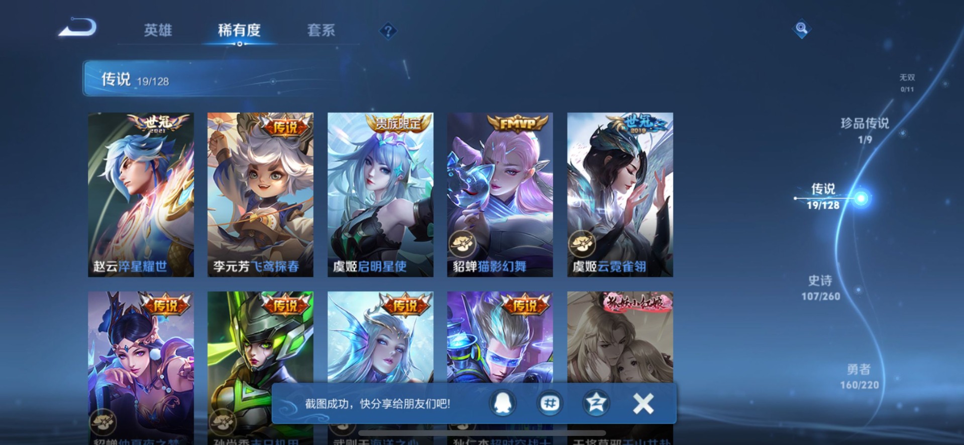 - PX_2106954-实名: 可修改 贵族等级: V6 英雄数: 111 皮肤数: 122 传说皮: 黄金狮子座,游龙清影,澜逐花归海 限定皮: 大圣娶亲,孙行者,山海·玄木吟,鸣野蒿,愿照·九州拓