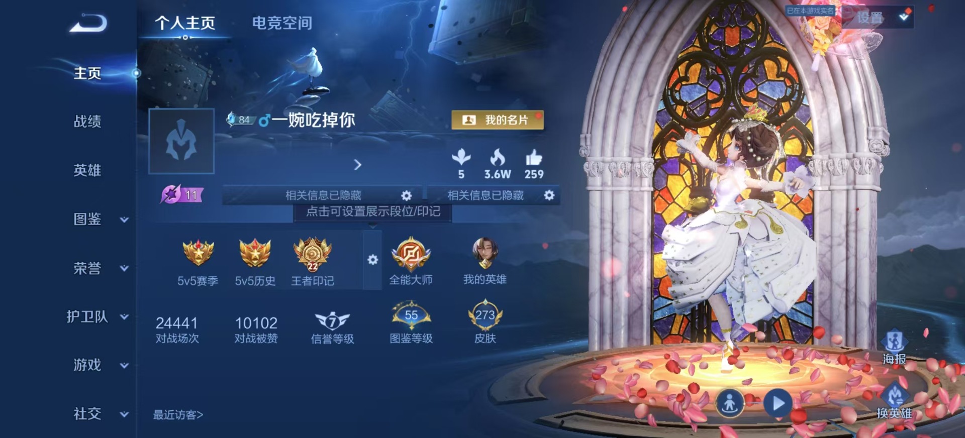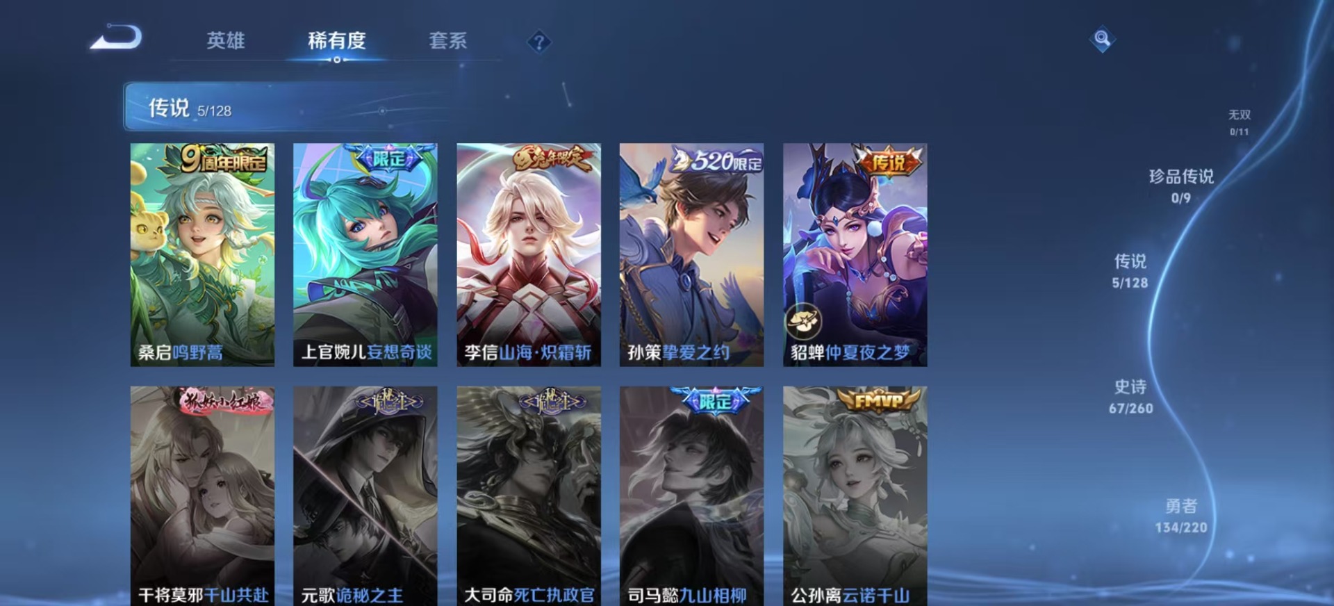 - PX_2068351-【妹子女号 富婆小号!!!!】实名: 可修改 贵族等级: V6 英雄数: 120 皮肤数: 169 荣耀水晶: 幻阙歌 传说皮: 久胜战神,幻光神枪,星之鸣奏,续相思 限定皮: 梁祝,星穹之声,至美·乘鲤谣,鸣野蒿,陌上桑,逐霄战戟,愿照·千秋盛,愿照·众生和