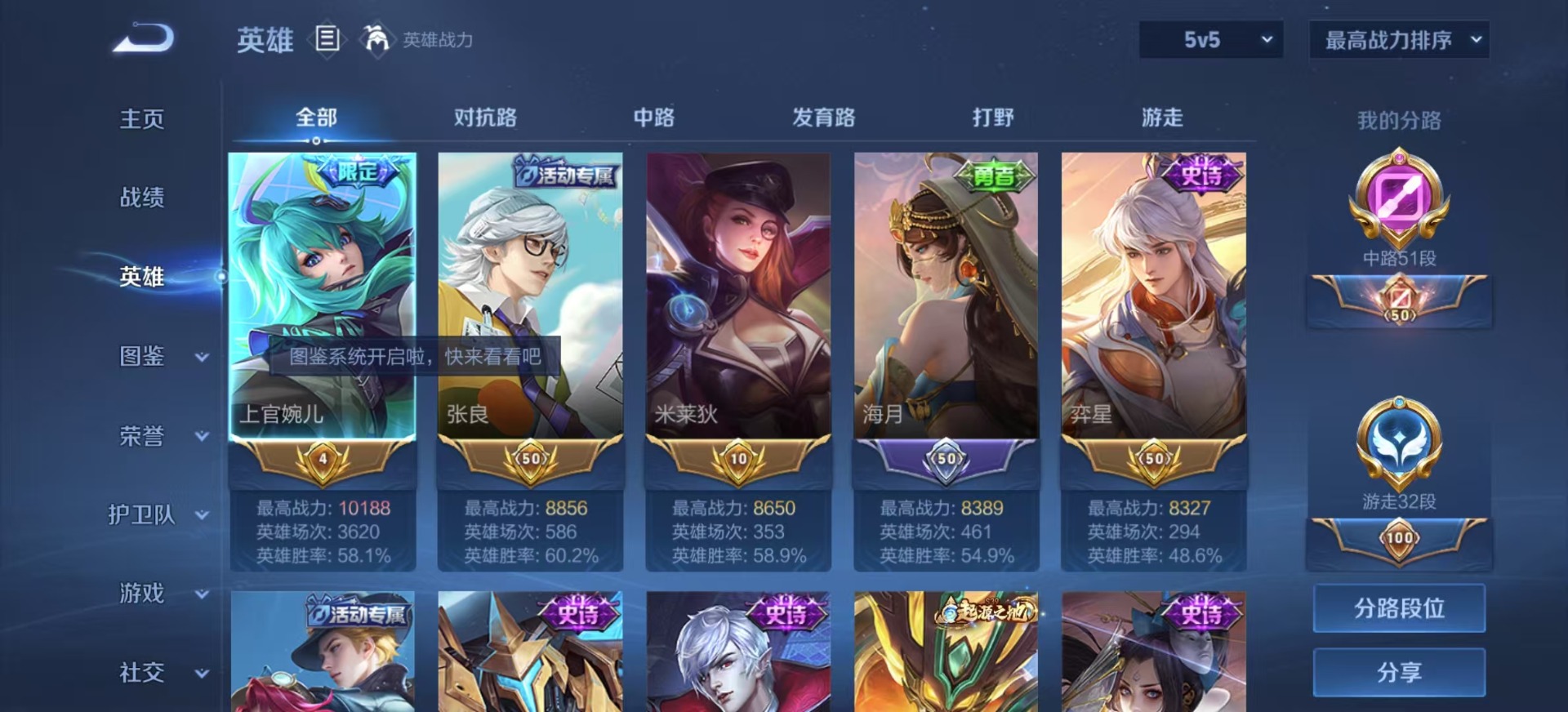 - [11628825]V7 5传说 123英雄 143皮肤 可修改实名 优质装备:炽阳神光,一念神魔,李逍遥,山海·炽霜斩(李信年限),炽翼辉光(娃娃菜牛角包) 珍宝阁皮:蔷薇恋人 限定皮:飞衡(韩信年限),梁祝,逐梦之星,天狼征服者,李小龙,蜜橘之夏,山海·玄木吟(马可年限) 史诗皮:龙之律动,百相守梦-周瑜,百相守梦-黄忠,黄金分割率,特工魅影,千年之狐,无限星赏官,晚萤,龙骑士(小龙虾),末日机甲-吕布,猫狗日记-孙策,乱世虎臣,节奏热浪,修罗,暗隐猎兽者,幽灵船长,鬼剑武藏,舞动绿茵,缤纷独角兽,乘风破浪,曙光守护者,箭羽风息,圣诞狂欢,圣诞恋歌,鹰眼统帅,魅力维加斯,未来纪元-赵云