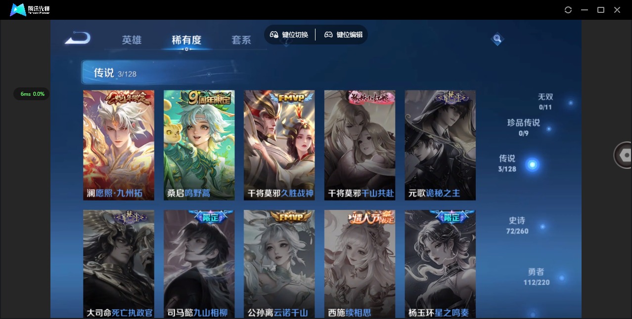 [12075456]V5 1典藏 3传说 125英雄 237皮肤 可修改实名 女号 优质装备:鸣剑·曳影,久胜战神 珍宝阁皮:妄想食味,胡桃夹子,蔷薇恋人 限定皮:愿照·九州拓(澜年限),逐霄战戟,鸣野蒿,高山流水,五谷丰年,李小龙 史诗皮:化蝶舞,星界战将,茶境仙,蒙犽顽岩魄,琥珀纪元伽罗,蔬乡物语(鲁班七号),紫霞仙子,黄金分割率,特工魅影,千年之狐,永昼,江河有灵,匿光侦查者,雪夜绮愿(周瑜),百解令(蒙犽),蒙恬荣光圣徽,冰冠公主,偶像歌手,电玩·爆裂旋风,末日机甲-吕布,猫狗日记-孙策,时之恋人-孙尚香,乱世虎臣,节奏热浪,修罗,女仆咖啡,摇滚巨星,水果甜心,绅士熊喵,星夜王子,心灵骇客,功夫厨神,德古拉伯爵,暗隐猎兽者,幽灵船长,鬼剑武藏,心灵战警,天秀·启明,舞动绿茵,地狱岩魂,纤云弄巧,拒霜思,缤纷独角兽,乘风破浪,逐浪之夏,月团寄思,水晶猎龙者,金属风暴,圣诞狂欢,圣诞恋歌,鹰眼统帅,王者之锤,暗夜贵公子,魅力维加斯,黎明之约,无心,未来纪元-赵云