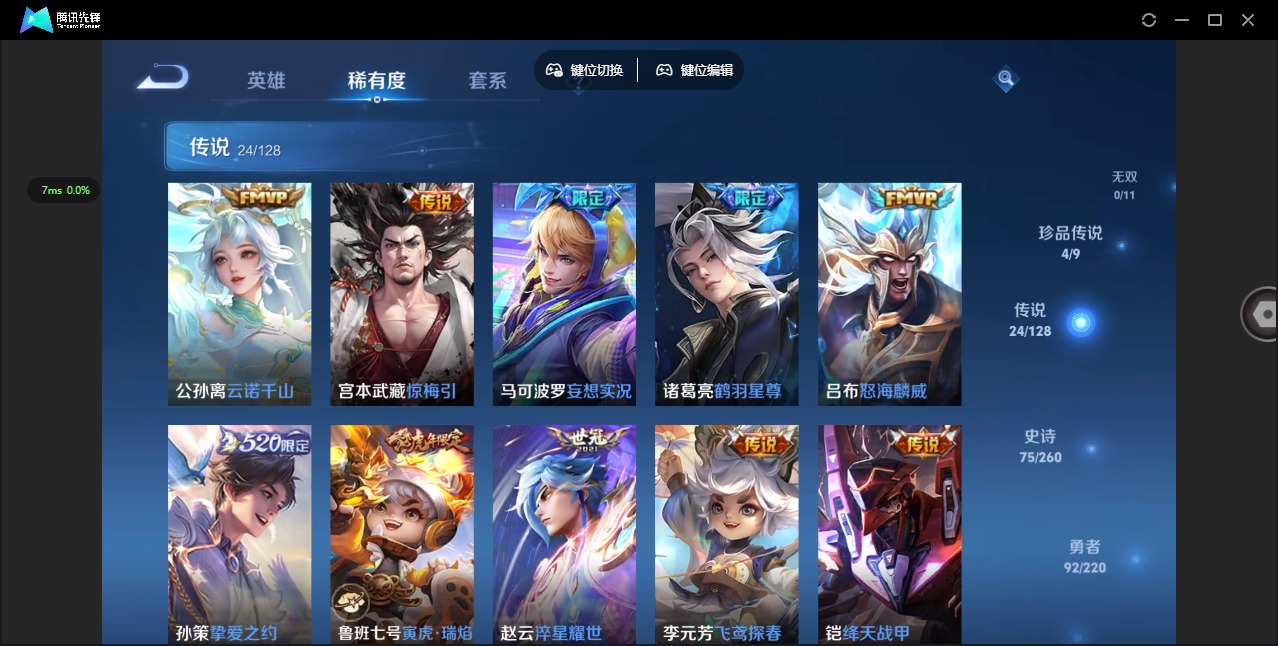 - [11867447]V7 1珍品传说 6传说 124英雄 139皮肤 可修改实名 优质装备:黄金狮子座,久胜战神,末日机甲-孙尚香(绿蚂蚱),淬星耀世,涂山容容 珍品传说:兔狲·蓬尾 传说皮:云诺千山 珍宝阁皮:蔷薇恋人 限定皮:愿照·众生和(妲己年限),神威(电光马子),冰锋战神,梁祝,烈魂,逐梦之音 史诗皮:苍鳞隐世,器灵·浮梦炉,瑰影绮梦,灵蛊蚀心,星界战将,龙之律动,藏狐·褐绒,百相守梦-周瑜,茶境仙,星界特工,紫霞仙子,电玩小子(小书包),千年之狐,魅语,蒙恬荣光圣徽,偶像歌手,晚萤,乱世虎臣,节奏热浪,摇滚巨星,水果甜心,心灵骇客,暗隐猎兽者,鬼剑武藏,心灵战警,诗语江南,纤云弄巧,乘风破浪,逐浪之夏,金属风暴,原初追逐者,鹰眼统帅,魅力维加斯,黎明之约