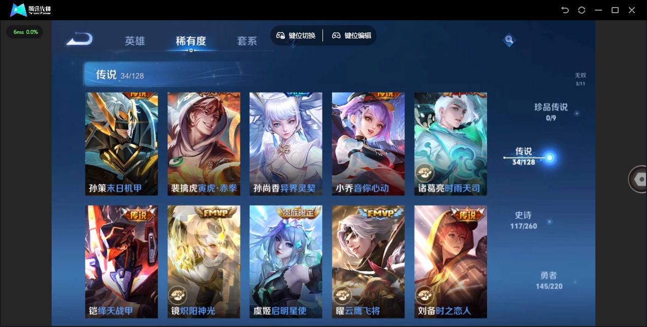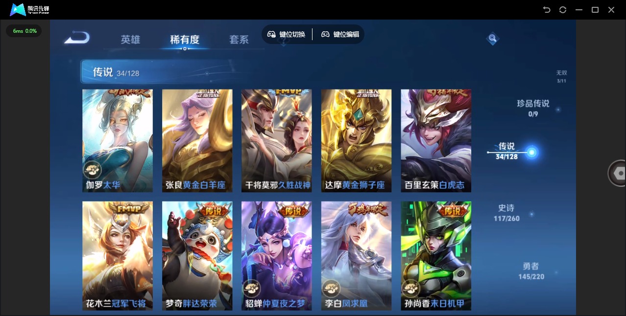 - [12295251]V6 1珍品传说 2传说 125英雄 246皮肤 可修改实名 优质装备:器灵·落星盏,炽阳神光 珍宝阁皮:妄想食味,玩趣恶龙 限定皮:愿照·山河定(司空震年限),高山流水,梁祝,李小龙,山海·玄木吟(马可年限) 史诗皮:苍鳞隐世,器灵·浮梦炉,绮世丹青,化蝶舞,龙之律动,百相守梦-周瑜,茶境仙,百相守梦-黄忠,紫霞仙子,江河有灵,百解令(蒙犽),蒙恬荣光圣徽,电玩·爆裂旋风,末日机甲-吕布,乱世虎臣,修罗,女仆咖啡,摇滚巨星,水果甜心,鬼剑武藏,舞动绿茵,地狱岩魂,纤云弄巧,缤纷独角兽,水晶猎龙者,曙光守护者,金属风暴,原初追逐者,圣诞恋歌,鹰眼统帅,魅力维加斯,黎明之约,无心,未来纪元-赵云