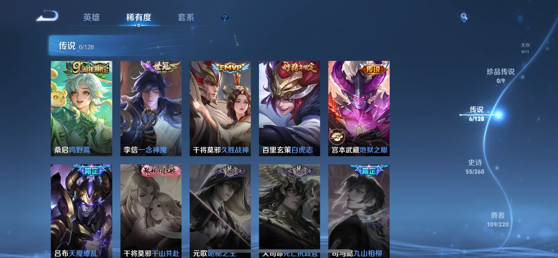 - [11547798]V6 3传说 123英雄 172皮肤 可修改实名 女号 优质装备:黄金射手座,炽翼辉光(娃娃菜牛角包) 珍宝阁皮:蔷薇恋人,女武神 限定皮:高山流水,五谷丰年,游园惊梦,梁祝,李小龙,如梦令-后羿,孙行者,时之祈愿-瑶(瑶传限),时之奇旅-妲己 史诗皮:化蝶舞,谪仙醉月,百相守梦-黄忠,紫霞仙子,黄金分割率,千年之狐,电玩·爆裂旋风,晚萤,冰冠公主,末日机甲-吕布,节奏热浪,女仆咖啡,水果甜心,心灵骇客,功夫厨神,暗隐猎兽者,幽灵船长,鬼剑武藏,繁星吟游(呼啦呼啦),拒霜思,缤纷独角兽,逐浪之夏,箭羽风息,金属风暴,圣诞恋歌,鹰眼统帅,魅力维加斯,无心,未来纪元-赵云