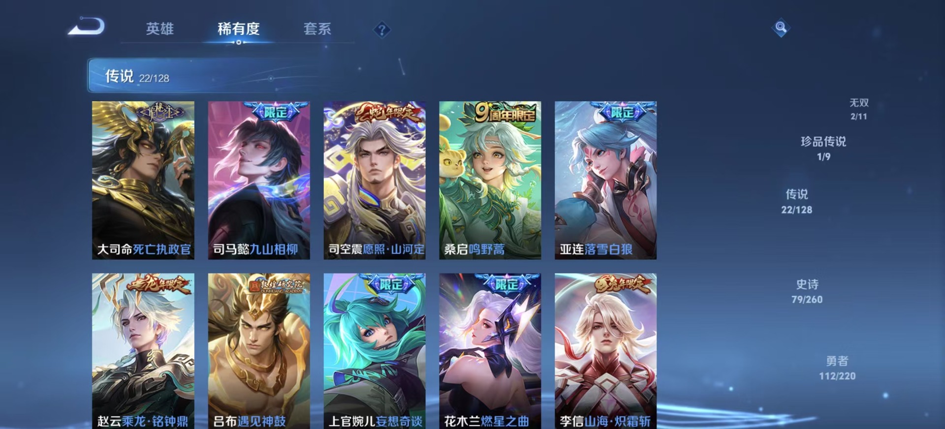 - PX_2083423-安卓Q 【可二次】 英雄数量:124 皮肤数量:353 贵族等级:贵族V8 【小国标张良 发育路44段】荣耀典藏2 传说品质5 史诗品质101全息碎影 神鉴启示录 云霓雀翎 久胜战神 飞鸢探春 启明星使 地狱火 神威 冰锋战神 天才门将 游园惊梦 王者之锤 心灵战警 迷踪丽影 功夫厨神 鬼剑武藏 魅力维加斯 皇家上将 繁星吟游 乱世虎臣 暗隐猎兽者 德古拉伯爵 幽灵船长 圣诞