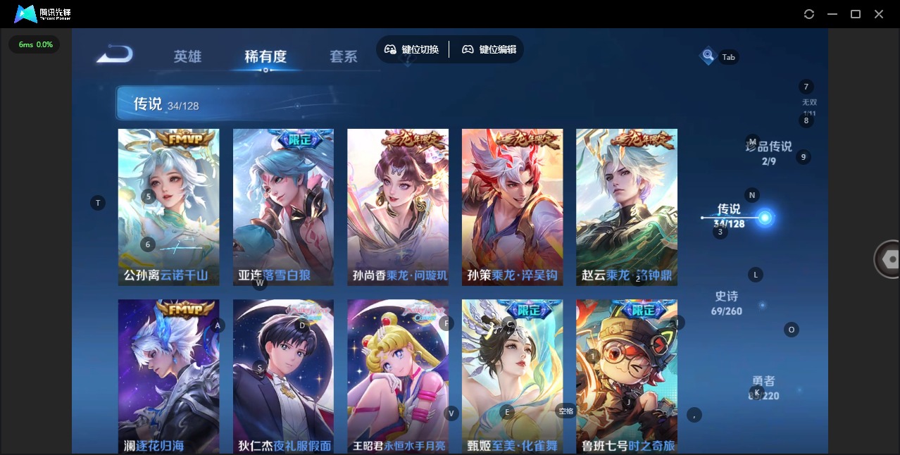 - [11604485]V6 3传说 123英雄 146皮肤 可修改实名 优质装备:仲夏夜之梦(大飞蛾),游龙清影(小青龙) 珍宝阁皮:蔷薇恋人,女武神 限定皮:鸣野蒿,高山流水,游园惊梦,天狼绘梦者,云端筑梦师,山海·玄木吟(马可年限) 史诗皮:百相守梦-黄忠,遇见神鹿,紫霞仙子,电玩小子(小书包),偶像歌手,龙骑士(小龙虾),末日机甲-吕布,乱世虎臣,摇滚巨星,绅士熊喵,心灵骇客,功夫厨神,德古拉伯爵,鬼剑武藏,心灵战警,地狱岩魂,缤纷独角兽,逐浪之夏,曙光守护者,箭羽风息,圣诞狂欢,鹰眼统帅,魅力维加斯,黎明之约,天秀·音浪