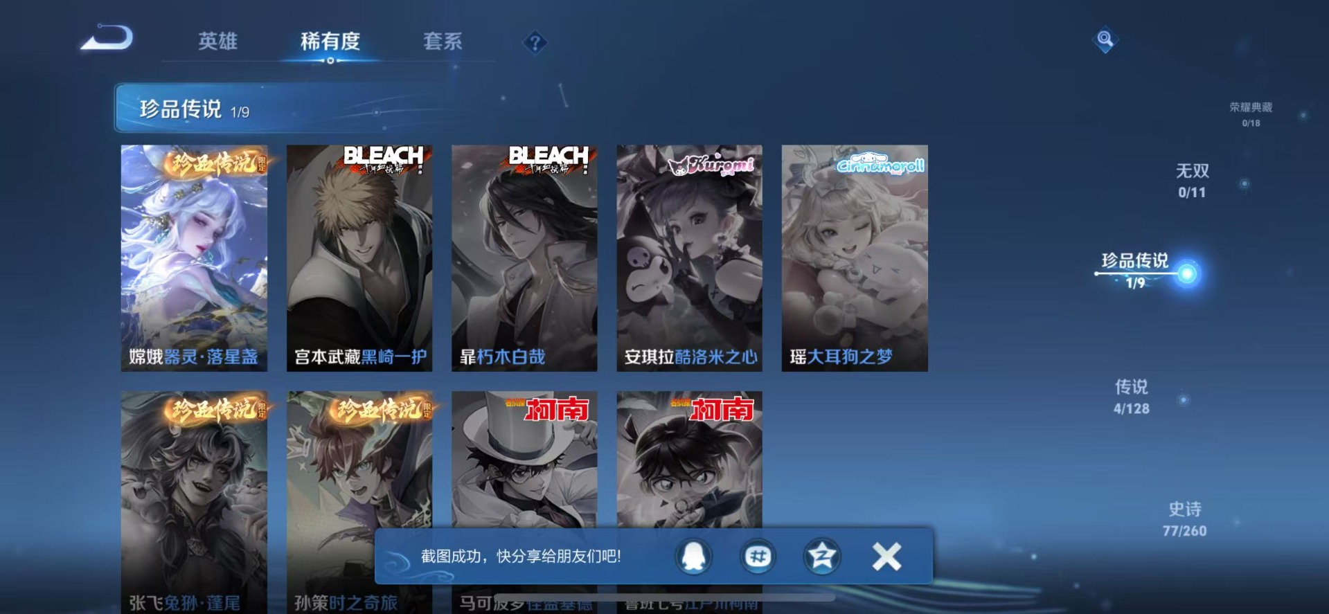 - [12025401]V7 1珍品传说 10传说 123英雄 166皮肤 可修改实名 优质装备:酷洛米之心,黄金狮子座,炽阳神光,地狱之眼,时之恋人-刘备(电焊工),超时空战士-狄仁杰,澜逐花归海 传说皮:乘龙·问璇玑(孙尚香年限),祥瑞亨通 珍宝阁皮:万物之道 限定皮:愿照·山河定(司空震年限),逐霄战戟,鸣野蒿,游园惊梦,孙行者 史诗皮:鸭鸭历险记-刘禅,化蝶舞,星界战将,龙之律动,石田雨龙,怒海争锋,破空之剑,蔬乡物语(鲁班七号),百相守梦-黄忠,织梦人,紫霞仙子,特工魅影,千年之狐,江河有灵,高渐离燃音魔法,无限星赏官,冰冠公主,白蛇,末日机甲-吕布,猫狗日记-孙策,修罗,女仆咖啡,水果甜心,天才门将,星夜王子,功夫厨神,暗隐猎兽者,幽灵船长,鬼剑武藏,暗渊魔法,天秀·启明,水晶猎龙者,金属风暴,圣诞狂欢,圣诞恋歌,鹰眼统帅,魅力维加斯,未来纪元-赵云