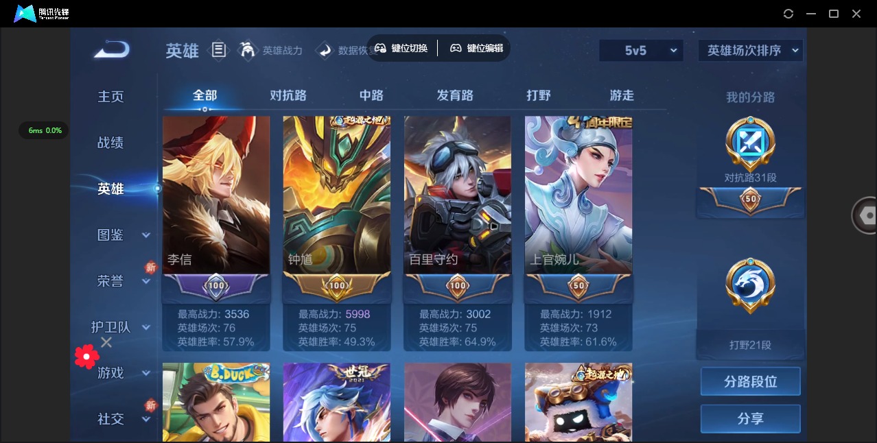 - [12279497]V6 4典藏 19传说 101英雄 119皮肤 可修改实名 优质装备:天鹅之梦(小乔典藏),星空梦想(太空人),鸣剑·曳影,全息碎影(猴子典藏),黄金射手座,云鹰飞将(小将军),绛天战甲(鸡嘴战神),久胜战神,炽阳神光,一念神魔,云霓雀翎,末日机甲-孙尚香(绿蚂蚱),地狱火,仲夏夜之梦(大飞蛾),音你心动-小乔,飞鸢探春,音你心动-周瑜,乞巧织情,时之恋人-刘备(电焊工),游龙清影(小青龙),淬星耀世,超时空战士-狄仁杰,霜月吟 限定皮:白鹤梁神女,天狼溯光者,李小龙,逐梦之影,乒乒小将 史诗皮:龙之律动,百相守梦-黄忠,遇见神鹿,电玩小子(小书包),黄金分割率,特工魅影,冰冠公主,猫狗日记-孙策,节奏热浪,修罗,女仆咖啡,天才门将,心灵骇客,功夫厨神,暗隐猎兽者,幽灵船长,舞动绿茵,地狱岩魂,纤云弄巧,缤纷独角兽,乘风破浪,逐浪之夏,鹰眼统帅,未来纪元-赵云