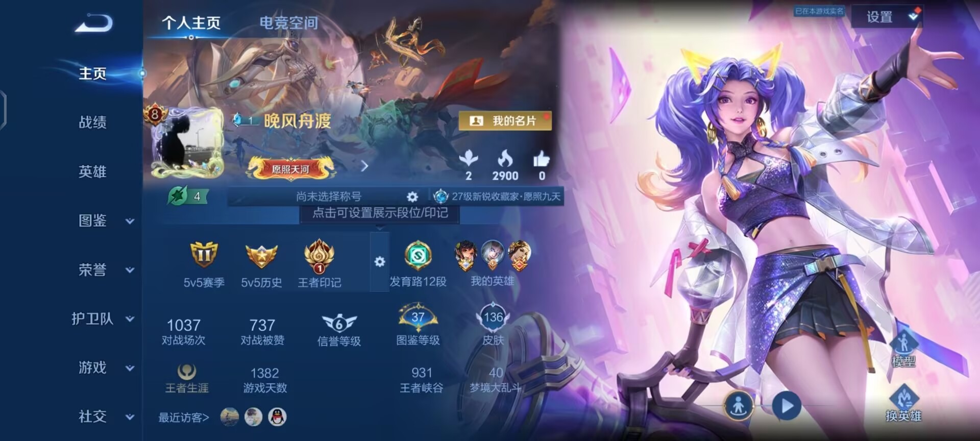 - PX_2095111-实名: 可修改 性别: 男号 贵族等级: V9 英雄数: 124 皮肤数: 347 荣耀水晶: 幻阙歌,拾光映像 无双皮: 真我赫兹(瑶),小乔时之魔女,雪境奇遇-甄姬 珍品传说: 器灵·落星盏,酷洛米之心 星传说: 金色仲夏夜 传说皮: 黄金射手座,绛天战甲,猫影幻舞,炽阳神光,仲夏夜之梦,音你心动-小乔,乞巧织情,游龙清影,淬星耀世,山海·炽霜斩,山海·琳琅生,山海·苍雷