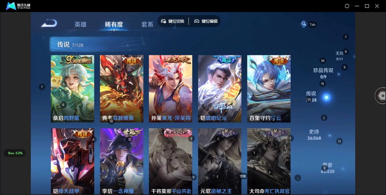 - [11971853]V8 2珍品传说 16传说 125英雄 259皮肤 可修改实名 女号 优质装备:江户川柯南,怪盗基德,黄金狮子座,云鹰飞将(小将军),久胜战神,炽阳神光,一念神魔,仲夏夜之梦(大飞蛾),地狱之眼,无双飞将,涂山容容 传说皮:典韦战鼓燎原 珍宝阁皮:妄想食味,优雅恋人,玩趣恶龙 限定皮:愿照·山河定(司空震年限),逐霄战戟,鸣野蒿,白晶晶,神威(电光马子),遇见飞天,高山流水,诗剑行,冰锋战神,武圣,李小龙,朱雀志(守约年限),冰霜恋舞曲,寅虎·赤拳(老虎年限),深海之息(深海大菠萝) 史诗皮:星界战将,龙之律动,藏狐·褐绒,百相守梦-百里守约,百相守梦-黄忠,紫霞仙子,黄金分割率,特工魅影,千年之狐,永昼,江河有灵,雪夜绮愿(周瑜),真我赫兹(镜),魅语,百解令(蒙犽),高渐离燃音魔法,蒙恬荣光圣徽,偶像歌手,电玩·爆裂旋风,末日机甲-吕布,猫狗日记-大乔,时之恋人-孙尚香,节奏热浪,修罗,女仆咖啡,摇滚巨星,水果甜心,天才门将,星夜王子,功夫厨神,德古拉伯爵,暗隐猎兽者,幽灵船长,鬼剑武藏,心灵战警,纤云弄巧,缤纷独角兽,乘风破浪,水晶猎龙者,唤灵魅影,金属风暴,原初追逐者,圣诞狂欢,圣诞恋歌,鹰眼统帅,黎明之约,未来纪元-赵云