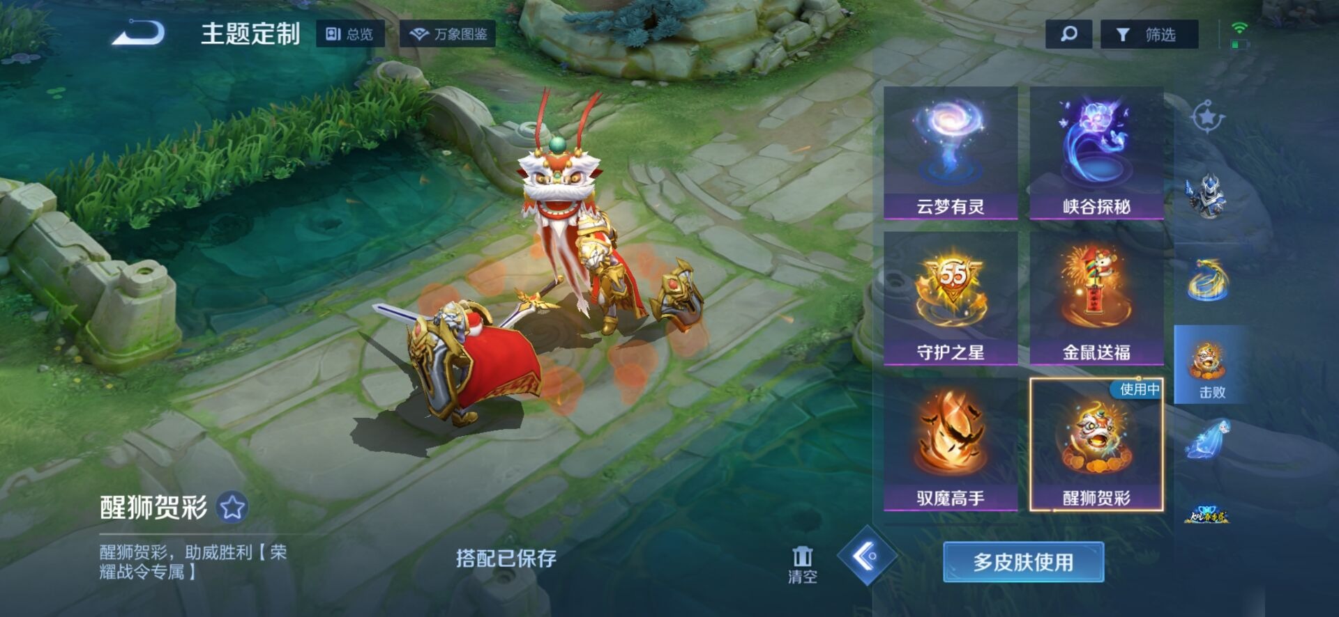 夏侯惇朔风刀,老夫子醍醐杖,盾山御銮,曹操烛龙,典韦穷奇,达摩沙漠行僧,牛魔御旌,鲁班七号狮舞东方,吕布猎兽之王,兰陵王金庭之子,明世隐疑决卦,鬼谷子原初探秘者,张良古海寻踪,狄仁杰万华元夜,嬴政白昼王子,芈月重明,程咬金演武夺筹,弈星混沌棋,米莱狄御霄,钟馗神迹守卫,钟馗驱傩正仪,狂铁御狮