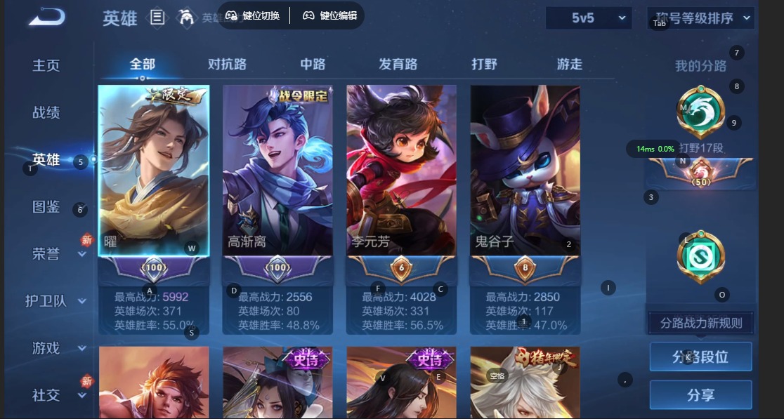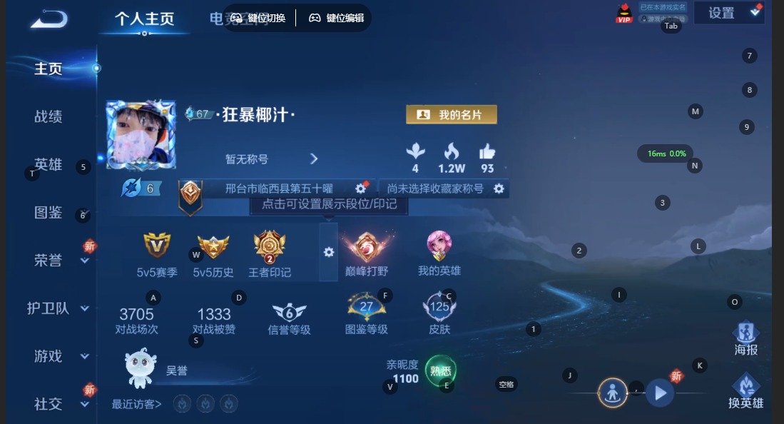 - PX_2095954-实名: 可修改 贵族等级: V5 英雄数: 124 皮肤数: 109 传说皮: 典韦战鼓燎原 限定皮: 齐天大圣,鸣野蒿