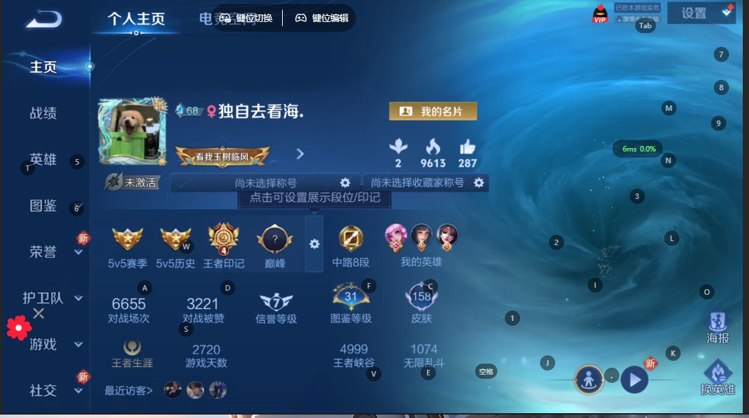 - [12032232]V6 5传说 122英雄 154皮肤 可修改实名 优质装备:黄金白羊座,久胜战神 传说皮:幻光神枪 珍宝阁皮:胡桃夹子 限定皮:愿照·九州拓(澜年限),鸣野蒿,傲雪梅枪,山海·玄木吟(马可年限) 史诗皮:鸭鸭历险记-刘禅,化蝶舞,星界战将,龙之律动,石田雨龙,茶境仙,破空之剑,战舞者,紫霞仙子,电玩小子(小书包),特工魅影,江河有灵,高渐离燃音魔法,龙骑士(小龙虾),晚萤,末日机甲-吕布,猫狗日记-孙策,猫狗日记-大乔,时之恋人-孙尚香,乱世虎臣,节奏热浪,女仆咖啡,摇滚巨星,水果甜心,绅士熊喵,功夫厨神,暗隐猎兽者,幽灵船长,鬼剑武藏,心灵战警,乐园奇幻夜,乘风破浪,曙光守护者,金属风暴,圣诞狂欢,鹰眼统帅,魅力维加斯,未来纪元-赵云