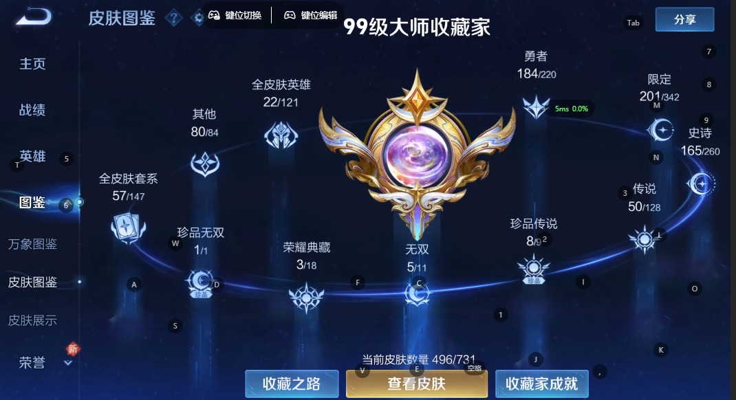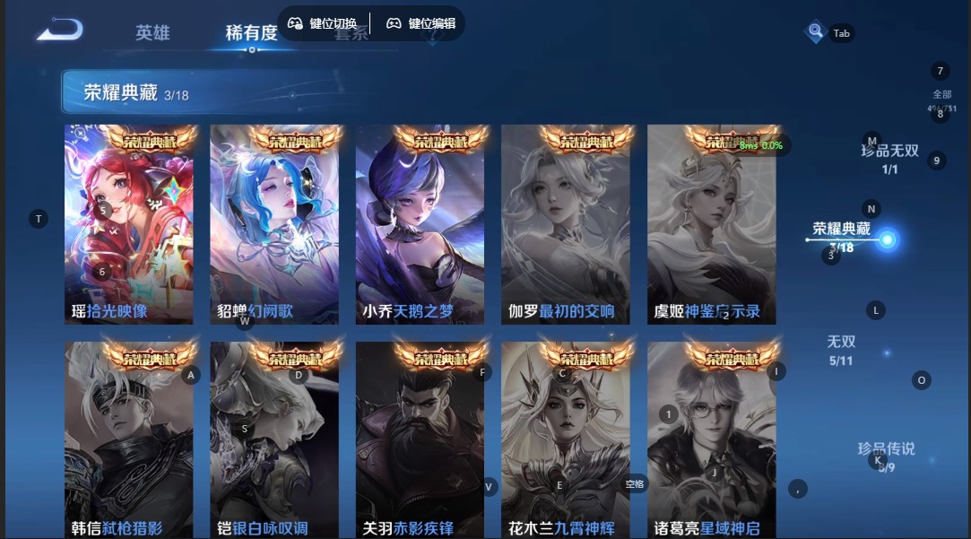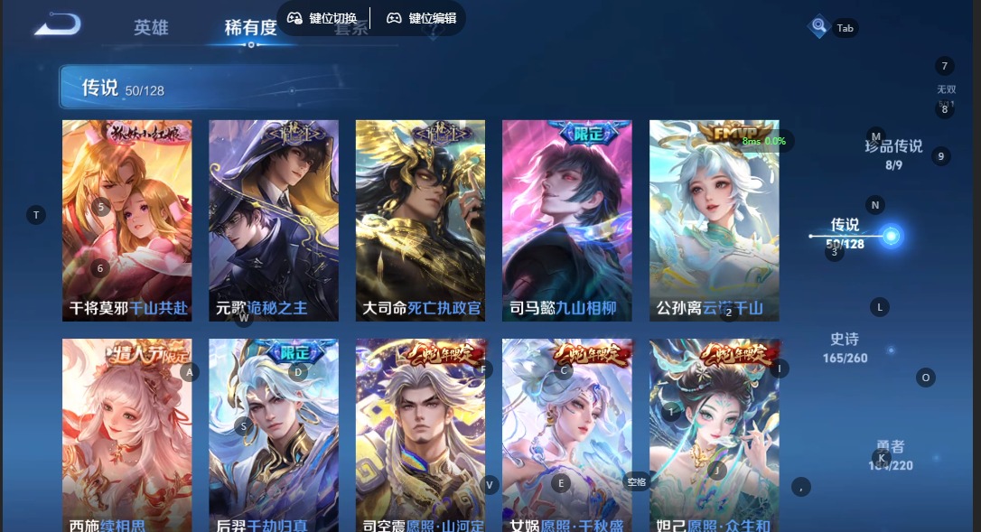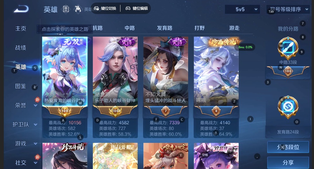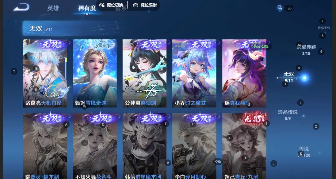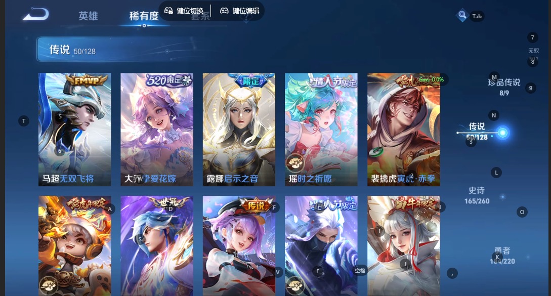 - [12291971]V9 2典藏 24传说 125英雄 305皮肤 可修改实名 优质装备:全息碎影(猴子典藏),弑枪猎影(韩信典藏),黄金狮子座,黄金射手座,冠军飞将,云鹰飞将(小将军),绛天战甲(鸡嘴战神),久胜战神,炽阳神光,一念神魔,云霓雀翎,末日机甲-孙尚香(绿蚂蚱),地狱火,时之恋人-刘备(电焊工),超时空战士-狄仁杰,天秀幻梦,山海·苍雷引(电光曜子),画中仙,灼幽烈阳,妄想实况 传说皮:幻光神枪 珍宝阁皮:优雅恋人,蔷薇恋人,玩趣恶龙 限定皮:鸣野蒿,白虎志(电光耗子),异界灵契(白毛香),时雨天司(水龙头),高山流水,五谷丰年,青龙志(铠年限),武圣,天狼绘梦者,李小龙,默契交锋-花木兰,大圣娶亲,冰霜恋舞曲 史诗皮:星界战将,龙之律动,石田雨龙,战舞者,东方月初,蔬乡物语(鲁班七号),电玩小子(小书包),黄金分割率,特工魅影,千年之狐,永昼,匿光破解者,百相守梦(刘备),江河有灵,蒙恬荣光圣徽,偶像歌手,暗夜猫娘,魅语,晚萤,冰冠公主,末日机甲-吕布,猫狗日记-孙策,猫狗日记-大乔,时之恋人-孙尚香,乱世虎臣,节奏热浪,修罗,女仆咖啡,摇滚巨星,水果甜心,绅士熊喵,天才门将,星夜王子,心灵骇客,德古拉伯爵,暗隐猎兽者,幽灵船长,鬼剑武藏,心灵战警,舞动绿茵,地狱岩魂,诗语江南,繁星吟游(呼啦呼啦),缤纷独角兽,乘风破浪,逐浪之夏,水晶猎龙者,曙光守护者,唤灵魅影,金属风暴,原初追逐者,圣诞狂欢,圣诞恋歌,鹰眼统帅,暗夜贵公子,魅力维加斯,黎明之约,天秀幻梦,无心,未来纪元-赵云