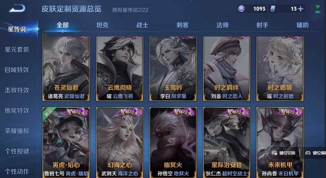 老夫子圣诞老人,哪吒逐梦之翼,项羽霸王别姬,吕布御风骁将,兰陵王影龙天霄,裴擒虎李小龙,上官婉儿梁祝,猪八戒猪悟能,孙悟空大圣娶亲,孙悟空至尊宝,马超神威,韩信飞衡,韩信逐梦之影,澜愿照·九州拓