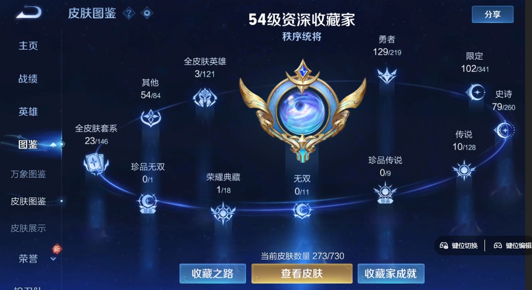 - PX_2099895-实名: 可修改 性别: 男号 贵族等级: V10 英雄数: 126 皮肤数: 531 荣耀水晶: 武则天,鸣剑·曳影,九霄神辉,弑枪猎影 无双皮: 真我赫兹(瑶),神器·明辉仪,青丘·九尾,花合斗,离恨烟,雪境奇遇-甄姬 珍品传说: 怪盗基德,时之奇旅-孙策 星传说: 时之愿境,时之羁绊 传说皮: 黄金狮子座,黄金射手座,云鹰飞将,绛天战甲,黄金白羊座,猫影幻舞,久胜战神,炽