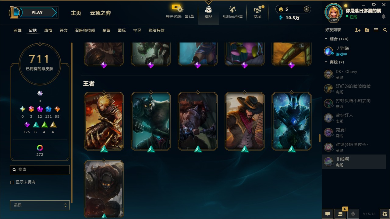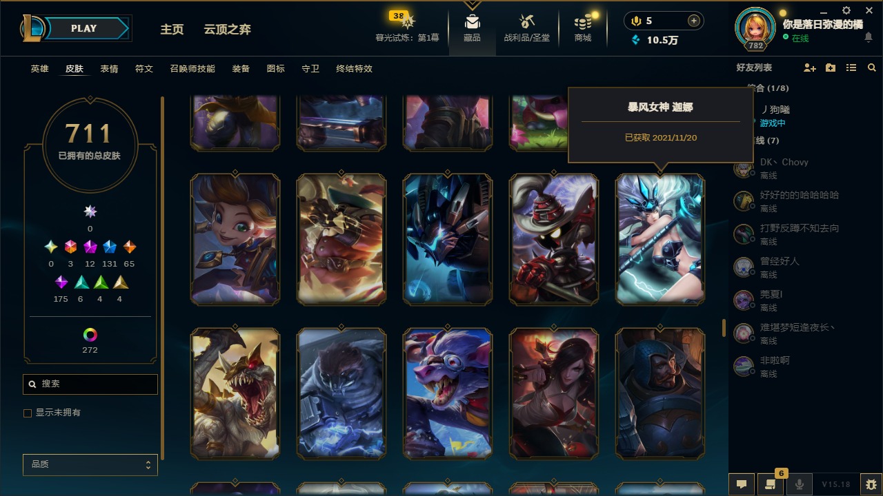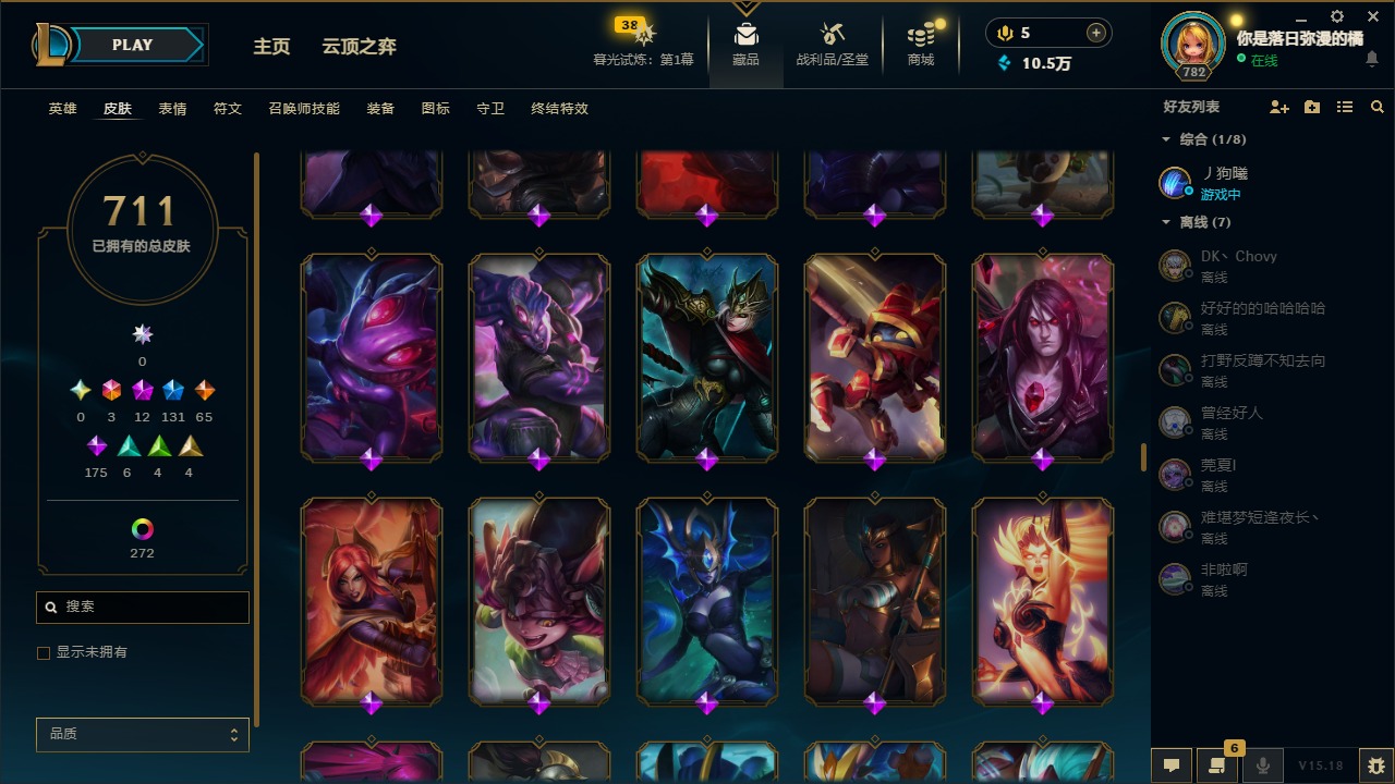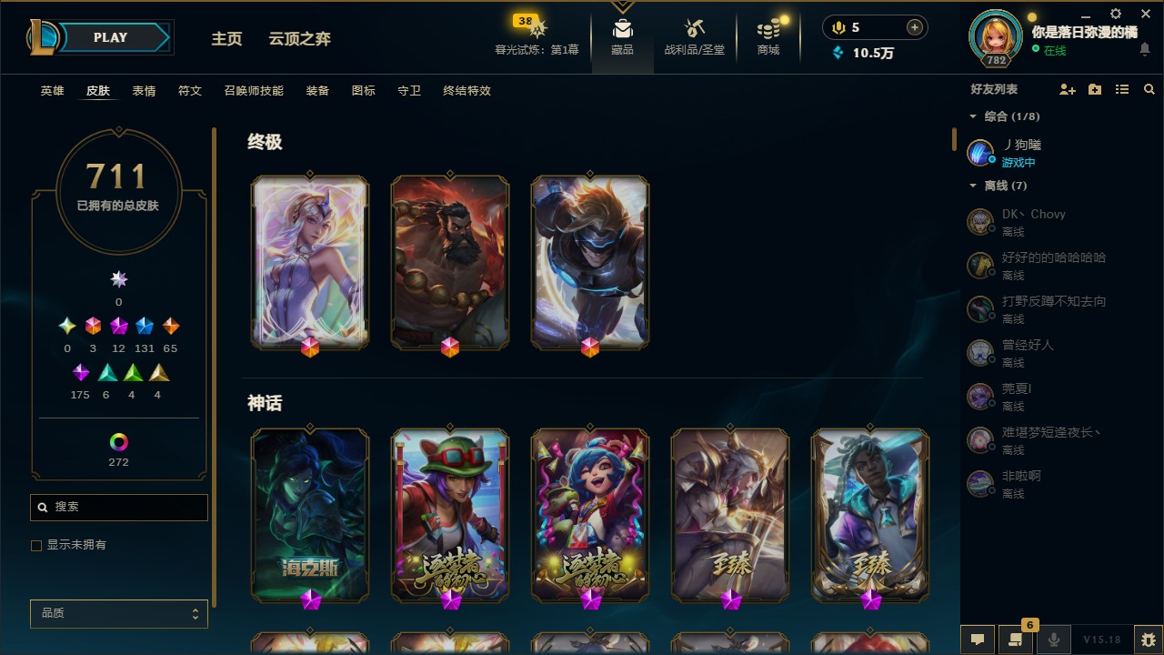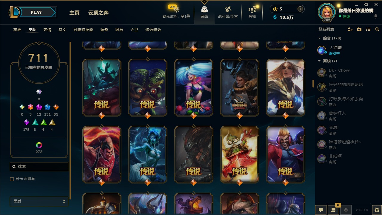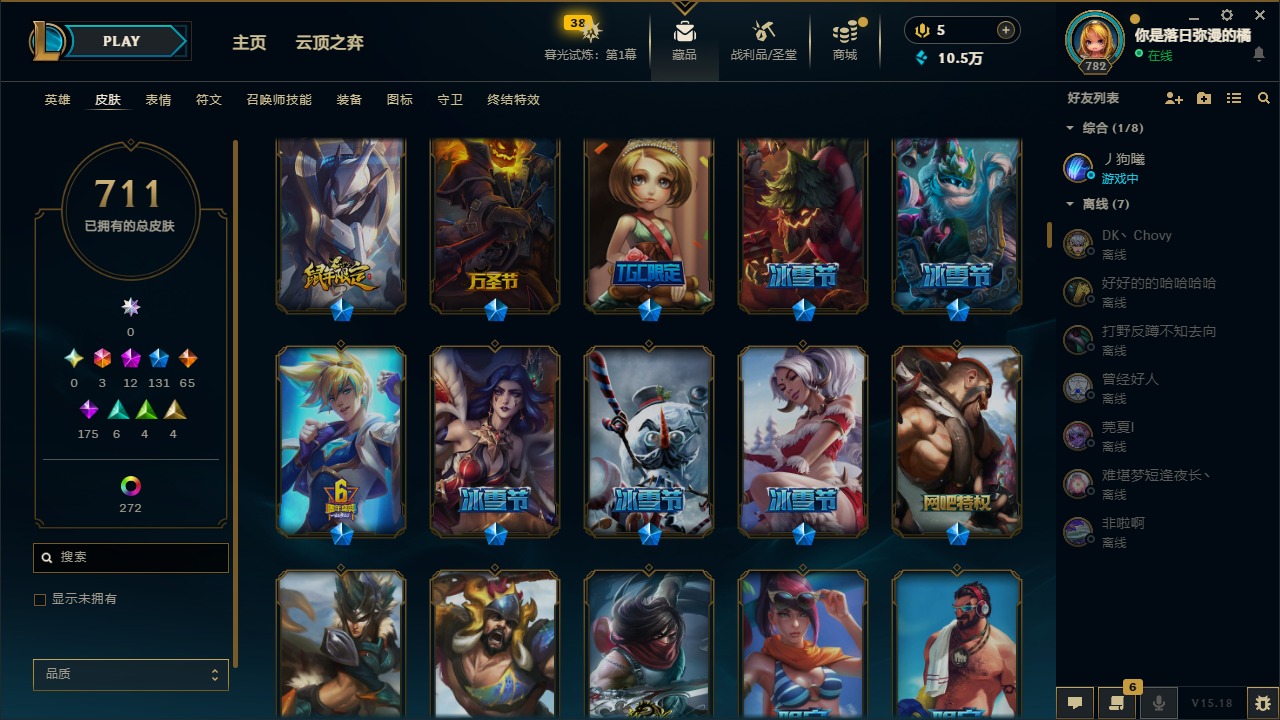 - [12173849]2终极 20神话 115限定 60传说 145史诗 692皮肤 218炫彩 171英雄 可二次 可修改实名 优质装备:至臻 腥红之月 亚托克斯,至臻 战斗学院 拉克丝,至臻 真实伤害 赛娜,至臻 魔女 婕拉,至臻 神龙尊者 炎龙瑟提,至臻 真实伤害 亚索,至臻 魅惑女巫 莫甘娜,至臻 神龙尊者均衡之龙 沃利贝尔,养蜂人 辛吉德,源代码 乐芙兰,暗影 沃里克,巧克力工坊 波比,都铎王朝 图奇,防爆机器人 布里茨,钢铁之翼 凤凰,冠军之箭 艾希,冠军之刃 锐雯 2016,冠军之血 希瓦娜,鸡里奥,警用试作体K-9 内瑟斯,蓝色忧郁 崔斯特,密林猎手 提莫,破空枪骑 孙悟空,送披萨的小姐姐 希维尔,糖果使徒 费德提克,野兽猎人 瑟庄妮,野兽猎人 泰达米尔,勇者 阿狸,勇者 奈德丽,制胜金球 拉莫斯,灰烬骑士 派克,大元素使,DJ-娑娜,冠军之箭 艾希 凯旋圣装,雾雨之刃 锐雯,冠军之刃 锐雯 2016 凯旋圣装,偶像歌手 阿理 极地雪莲,无畏骑士 瑟庄妮 赤子初心,闭月之颜 貂蝉 炫金莲华,至臻 腥红之月 亚托克斯(2022),至臻 战斗学院 拉克丝(2022),咖啡甜心 金克丝 核桃巴菲,净雪之月 莫甘娜 冬虹,银龙裁夬 泰隆 潜龙在渊,墨之影武者 亚索 金墨耀影,暗星 科加斯,心之钢 伊泽瑞尔 天纵才华,魔女 阿卡丽 虚荣,幻灵战斗兔 阿萝拉 梦幻强袭,魅影之刃 锐雯,暗裔英雄 盖伦 海克斯:海克斯 玛尔扎哈,海克斯 雷克顿,海克斯 波比,海克斯 瑟庄妮 限定:星之守护者 芮尔,双城之战2 孤勇者 艾克,生化领主 泰达米尔 情人节限定:觅心女王 寒冰,甜心宝贝 安妮,甜心之翎 洛,幽梦玫瑰 球女 赛季限定皮:胜利之运 崔斯特,胜利剑圣 易,胜利女神 娑娜 冠军限定系列:S1FNC 酒桶,S1FNC 迦娜,S1FNC 嘉文四世,S1FNC 卡尔萨斯,S2 暗杀星 蒙多,S2 暗杀星 努努,S2 暗杀星 伊泽瑞尔,S3 SKT T1 贾克斯,S3 SKT T1 薇恩,S3 SKT T1 婕拉,S4 SSW 锤石,S4 SSW 雷恩加尔,S4 SSW 泰隆,S4 SSW 图奇,S4 SSW 炼金,S5 SKT T1 雷克顿,S5 SKT T1 瑞兹,S5 SKT T1 阿兹尔,S6 SKT T1 球女,S7 SSG 嘉文四世,S7 SSG 纳尔,S7 SSG 霞,S8 I