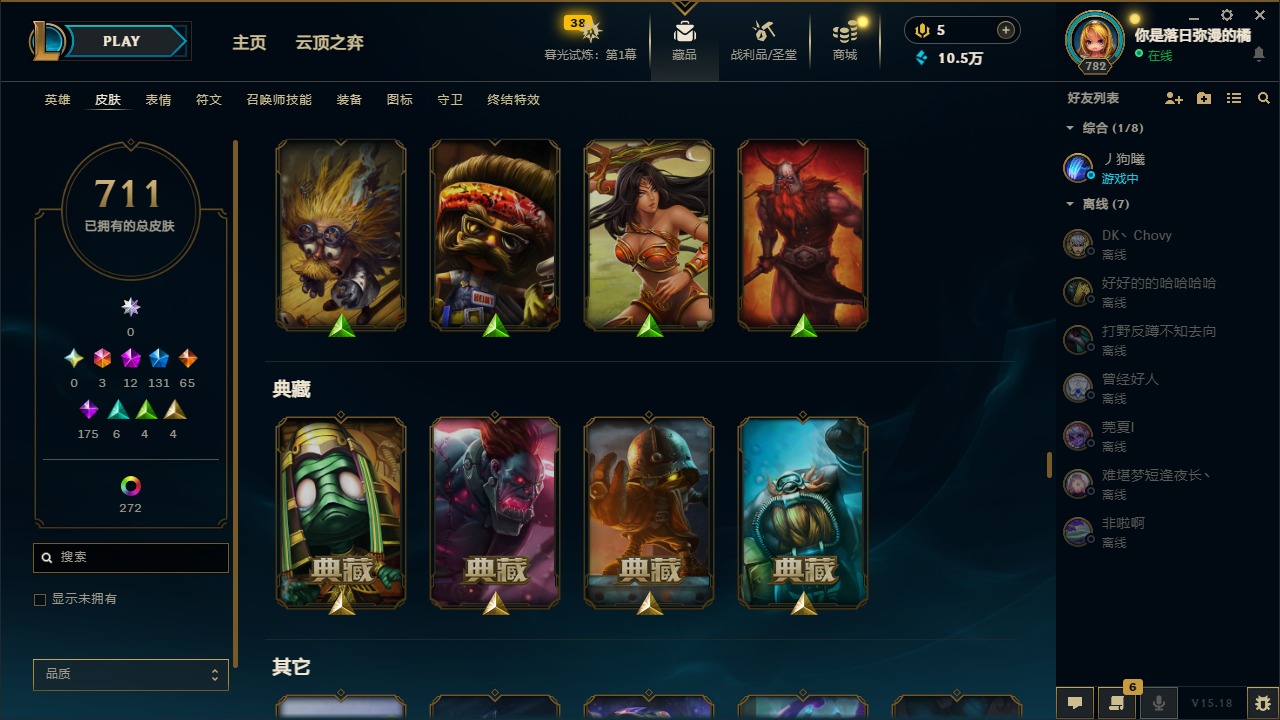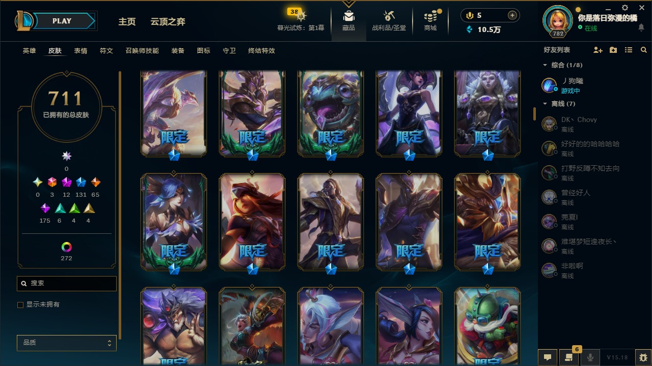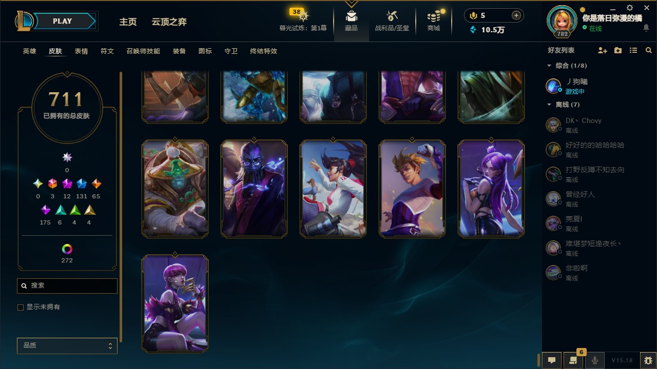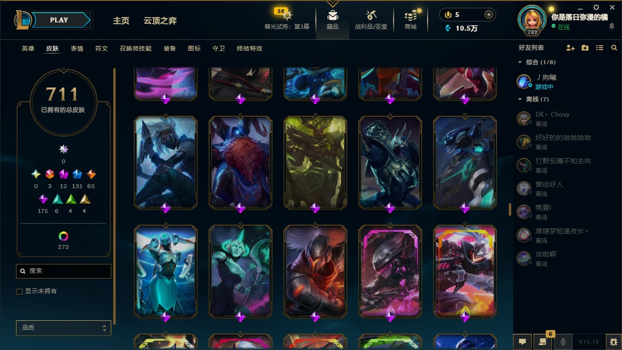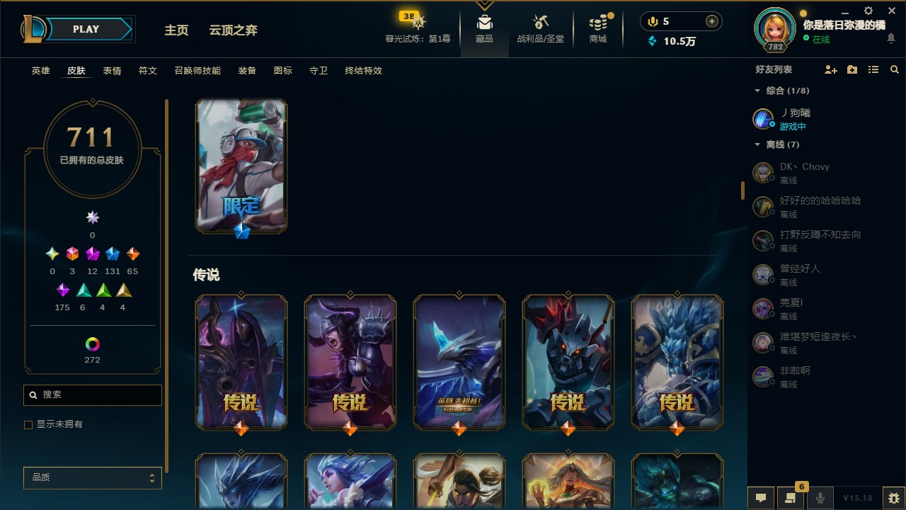 - [12173849]2终极 20神话 115限定 60传说 145史诗 692皮肤 218炫彩 171英雄 可二次 可修改实名 优质装备:至臻 腥红之月 亚托克斯,至臻 战斗学院 拉克丝,至臻 真实伤害 赛娜,至臻 魔女 婕拉,至臻 神龙尊者 炎龙瑟提,至臻 真实伤害 亚索,至臻 魅惑女巫 莫甘娜,至臻 神龙尊者均衡之龙 沃利贝尔,养蜂人 辛吉德,源代码 乐芙兰,暗影 沃里克,巧克力工坊 波比,都铎王朝 图奇,防爆机器人 布里茨,钢铁之翼 凤凰,冠军之箭 艾希,冠军之刃 锐雯 2016,冠军之血 希瓦娜,鸡里奥,警用试作体K-9 内瑟斯,蓝色忧郁 崔斯特,密林猎手 提莫,破空枪骑 孙悟空,送披萨的小姐姐 希维尔,糖果使徒 费德提克,野兽猎人 瑟庄妮,野兽猎人 泰达米尔,勇者 阿狸,勇者 奈德丽,制胜金球 拉莫斯,灰烬骑士 派克,大元素使,DJ-娑娜,冠军之箭 艾希 凯旋圣装,雾雨之刃 锐雯,冠军之刃 锐雯 2016 凯旋圣装,偶像歌手 阿理 极地雪莲,无畏骑士 瑟庄妮 赤子初心,闭月之颜 貂蝉 炫金莲华,至臻 腥红之月 亚托克斯(2022),至臻 战斗学院 拉克丝(2022),咖啡甜心 金克丝 核桃巴菲,净雪之月 莫甘娜 冬虹,银龙裁夬 泰隆 潜龙在渊,墨之影武者 亚索 金墨耀影,暗星 科加斯,心之钢 伊泽瑞尔 天纵才华,魔女 阿卡丽 虚荣,幻灵战斗兔 阿萝拉 梦幻强袭,魅影之刃 锐雯,暗裔英雄 盖伦 海克斯:海克斯 玛尔扎哈,海克斯 雷克顿,海克斯 波比,海克斯 瑟庄妮 限定:星之守护者 芮尔,双城之战2 孤勇者 艾克,生化领主 泰达米尔 情人节限定:觅心女王 寒冰,甜心宝贝 安妮,甜心之翎 洛,幽梦玫瑰 球女 赛季限定皮:胜利之运 崔斯特,胜利剑圣 易,胜利女神 娑娜 冠军限定系列:S1FNC 酒桶,S1FNC 迦娜,S1FNC 嘉文四世,S1FNC 卡尔萨斯,S2 暗杀星 蒙多,S2 暗杀星 努努,S2 暗杀星 伊泽瑞尔,S3 SKT T1 贾克斯,S3 SKT T1 薇恩,S3 SKT T1 婕拉,S4 SSW 锤石,S4 SSW 雷恩加尔,S4 SSW 泰隆,S4 SSW 图奇,S4 SSW 炼金,S5 SKT T1 雷克顿,S5 SKT T1 瑞兹,S5 SKT T1 阿兹尔,S6 SKT T1 球女,S7 SSG 嘉文四世,S7 SSG 纳尔,S7 SSG 霞,S8 I
