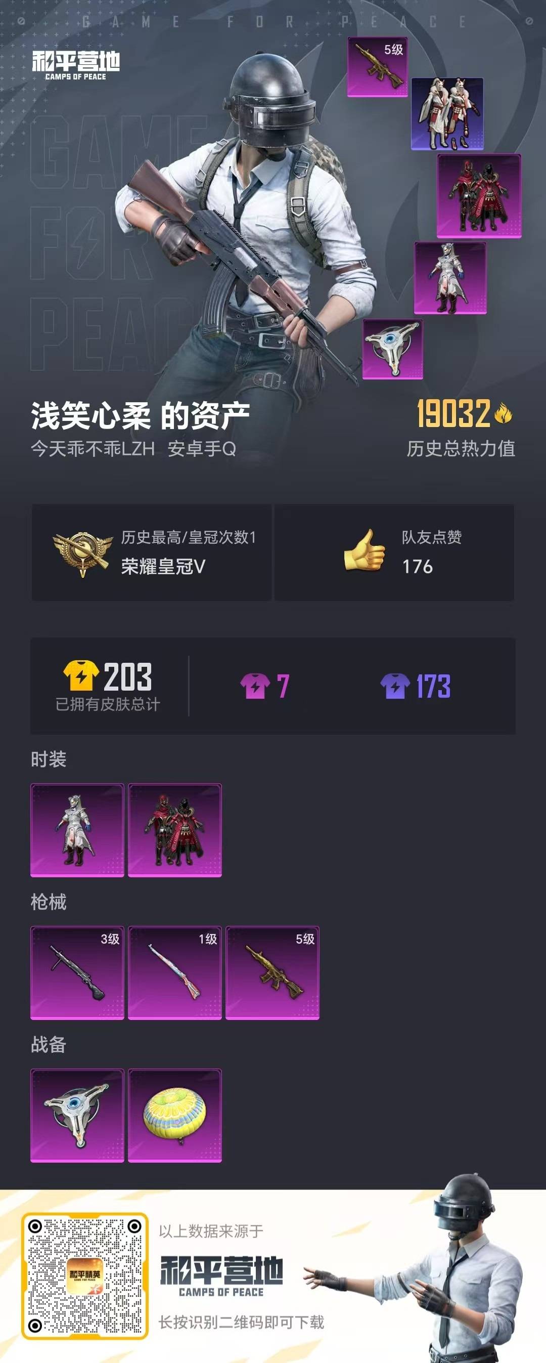 - PX_2106309-苹果QQ 历史总热力值:72323 粉装数量:10 特效枪数量:10 王牌印记:15 历史最高段位:无敌战神 套装数量:150 时装数量:559 枪械数量:213 战备数量:154 装备数量:259 时装:套装-仲夏莫吉托,套装-宝贝奶油派,套装-彩虹甜喵,套装-童趣迷兔,套装-缤纷油彩,套装-萌物绒绒,套装-酣梦娃娃,套装-金丰海韵,角色-冷漠罗丽,角色-小可学妹,套装-S
