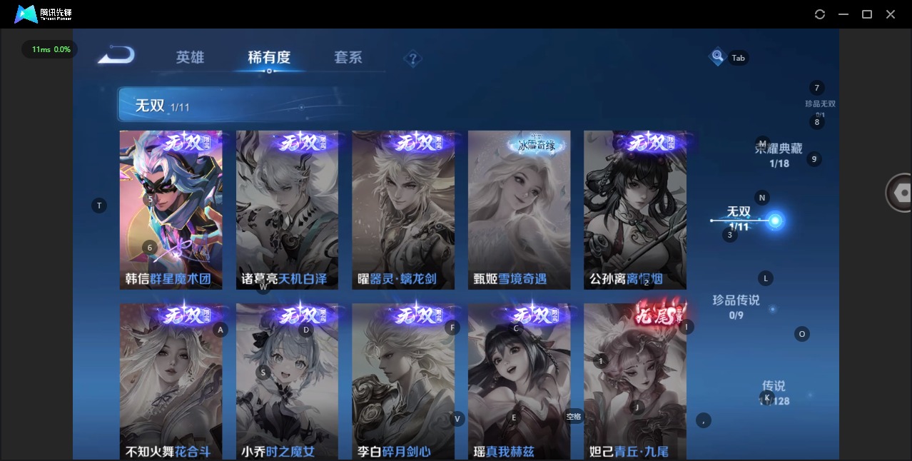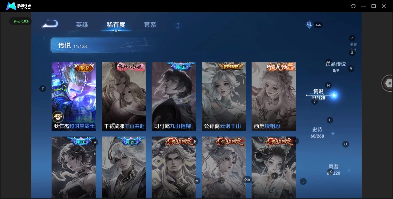 - [11607642]V7 1典藏 6传说 124英雄 280皮肤 可修改实名 优质装备:大秦宣太后,久胜战神,炽阳神光,地狱火,超时空战士-狄仁杰 珍宝阁皮:优雅恋人,玩趣恶龙 限定皮:鸣野蒿,至尊宝,时雨天司(水龙头),飞衡(韩信年限),瑞麟志(木兰年限),遇见飞天,五谷丰年,青龙志(铠年限),冰锋战神,天狼运算者,李小龙,朱雀志(守约年限),霸王别姬-虞姬,大圣娶亲 史诗皮:鸭鸭历险记-刘禅,化蝶舞,星界战将,龙之律动,石田雨龙,茶境仙,破空之剑,蔬乡物语(鲁班七号),百相守梦-百里守约,百相守梦-黄忠,紫霞仙子,白龙吟,黄金分割率,特工魅影,千年之狐,永昼,江河有灵,魅语,百解令(蒙犽),蒙恬荣光圣徽,匿光破解者,青蛇,偶像歌手,白蛇,电玩·爆裂旋风,暗夜猫娘,末日机甲-吕布,猫狗日记-孙策,猫狗日记-大乔,时之恋人-孙尚香,乱世虎臣,节奏热浪,女仆咖啡,摇滚巨星,水果甜心,绅士熊喵,天才门将,星夜王子,心灵骇客,功夫厨神,德古拉伯爵,暗隐猎兽者,幽灵船长,鬼剑武藏,心灵战警,天秀·启明,舞动绿茵,纤云弄巧,繁星吟游(呼啦呼啦),拒霜思,缤纷独角兽,乘风破浪,逐浪之夏,水晶猎龙者,曙光守护者,箭羽风息,金属风暴,圣诞狂欢,圣诞恋歌,鹰眼统帅,暗夜贵公子,魅力维加斯,黎明之约,未来纪元-赵云