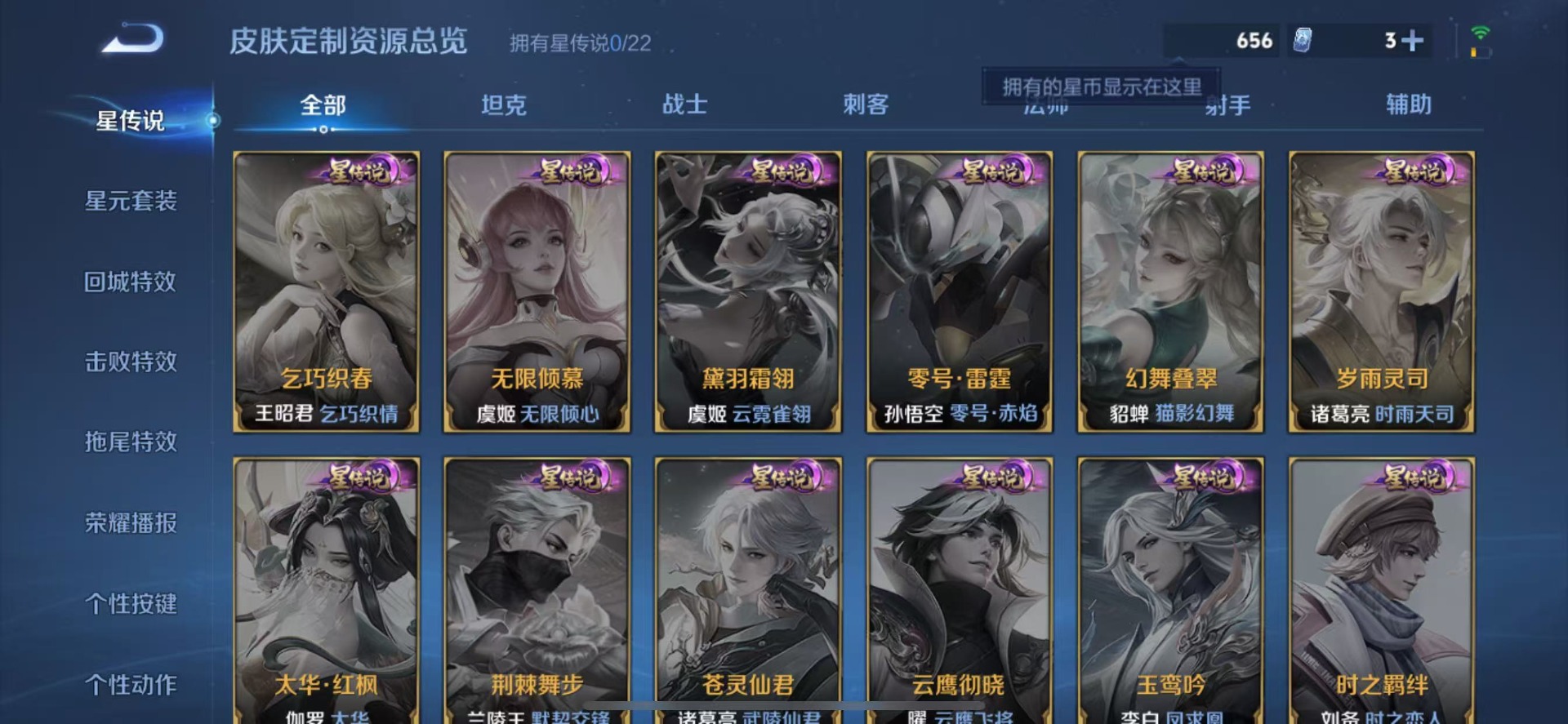 - PX_2111102-实名: 可修改 贵族等级: V8 英雄数: 124 皮肤数: 258 荣耀水晶: 鸣剑·曳影 无双皮: 离恨烟,器灵·螭龙剑 珍品传说: 江户川柯南,怪盗基德,时之奇旅-孙策 星传说: 星际治安官 传说皮: 云鹰飞将,一念神魔,零号·赤焰,乞巧织情,游龙清影,超时空战士-狄仁杰,末日机甲-孙策,燃星之曲,画中仙,浮生妄,电玩·雷克斯,妄想实况,澜逐花归海,琥珀纪元铠,乘龙·铭