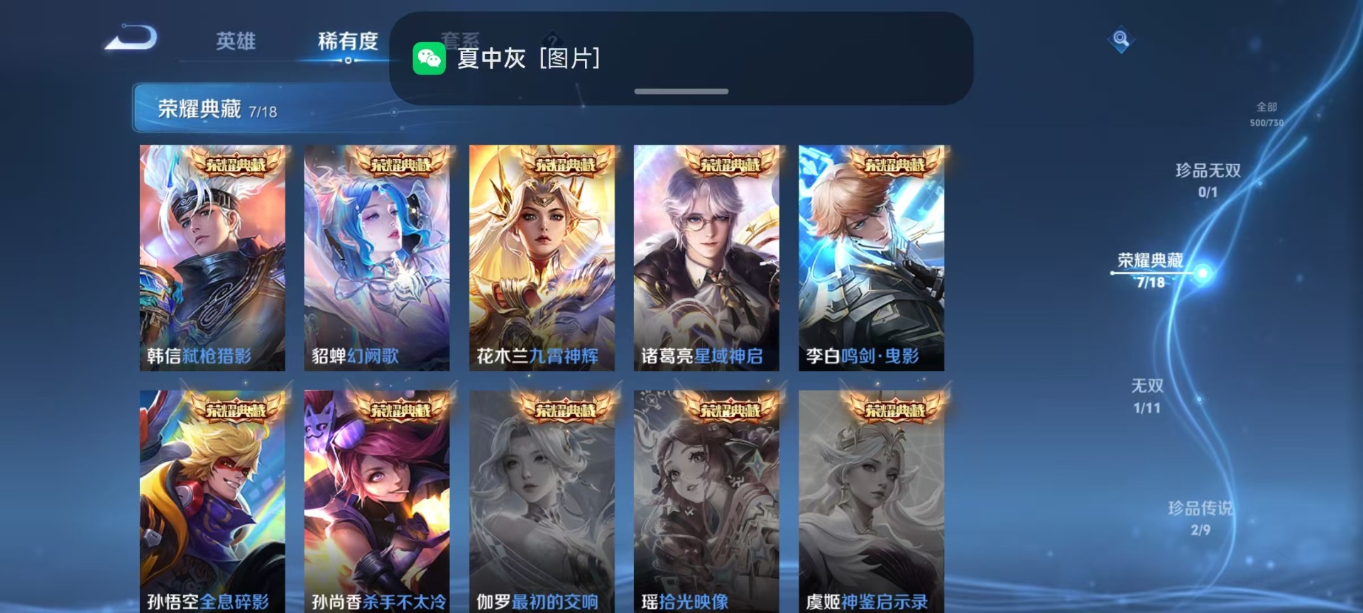 孙尚香杀手不太冷,诸葛亮星域神启,花木兰九霄神辉,李白鸣剑·曳影,孙悟空全息碎影,韩信弑枪猎影,貂蝉幻阙歌